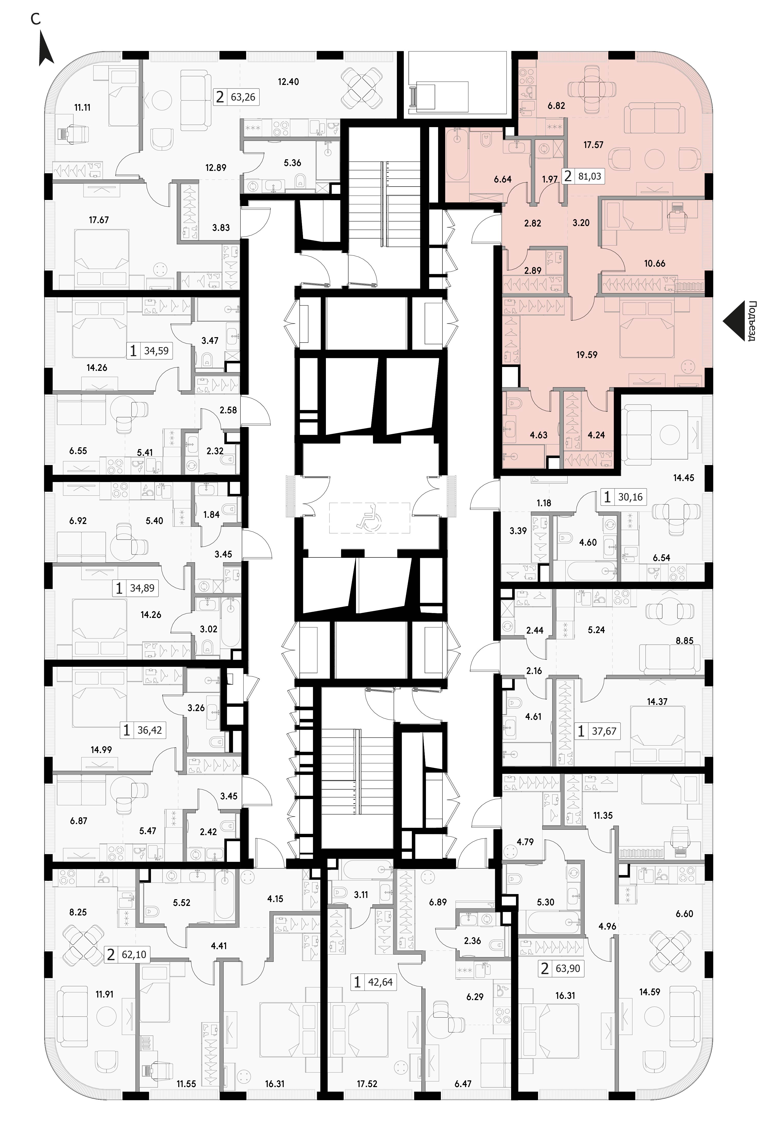 Комфортная двухкомнатная квартира квартира площадью 81.03 м² без отделки. Лот расположен на 23 этаже, корпуса 1.2 ЖК «ВЕЕР» (VEER).Комплекс находится по адресу: г. Москва, ул Верейская. Это соединение удобной инфраструктуры городской застройки и зеленых зон отдыха.