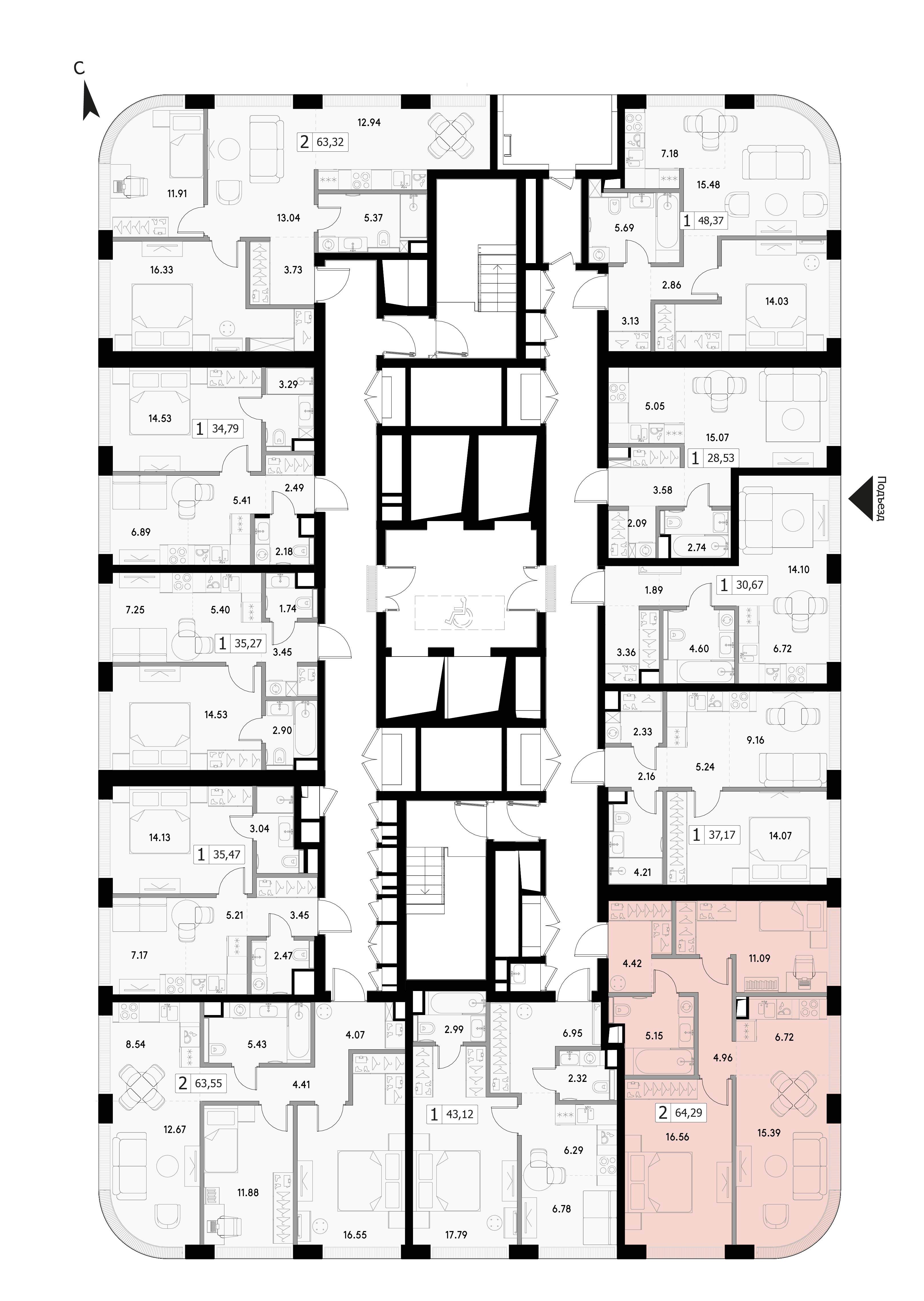 Двухкомнатная квартира 64.29 м², 2 этаж, Жилой комплекс «VEER» (Веер)