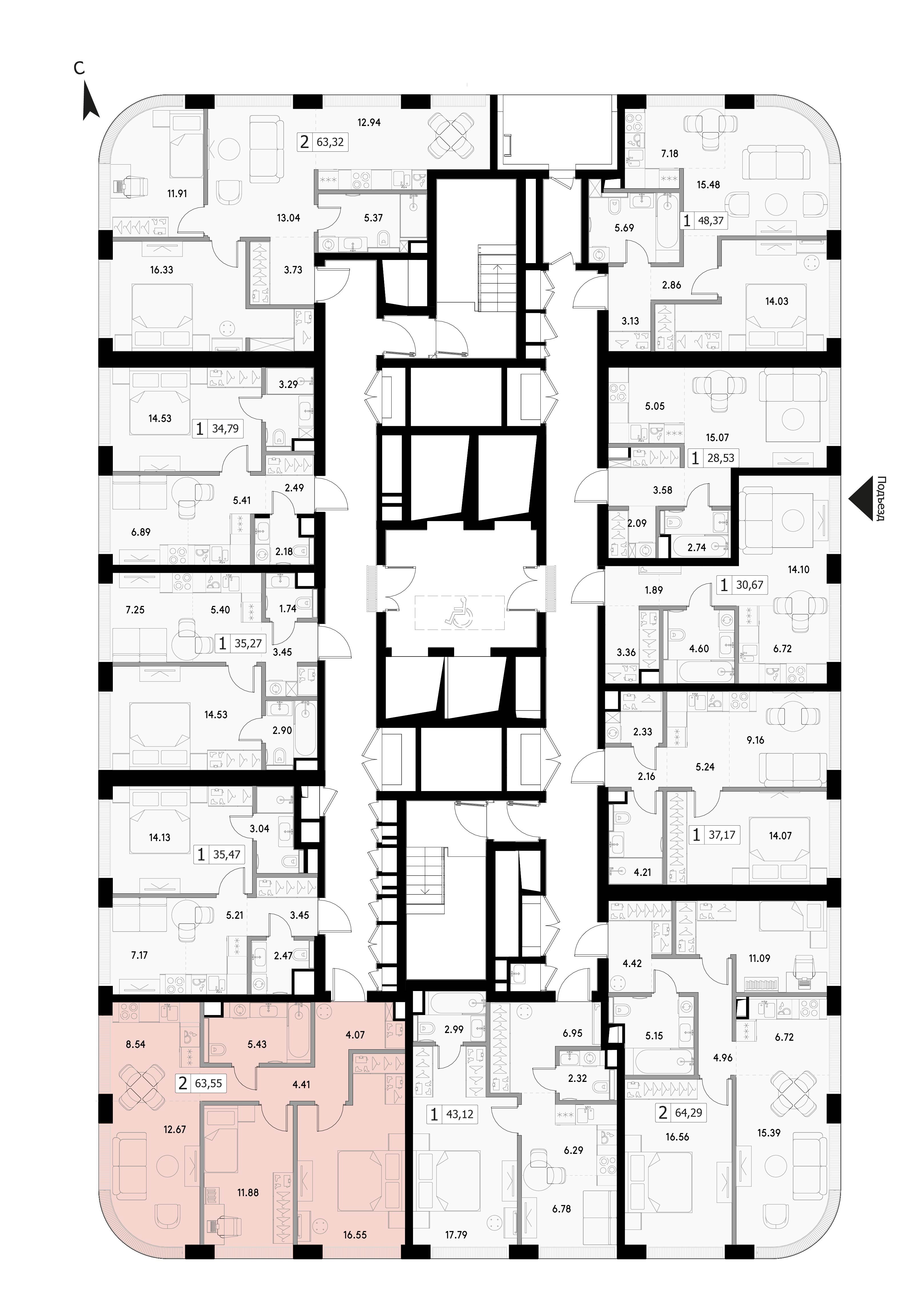 Комфортная двухкомнатная квартира квартира площадью 63.55 м² без отделки. Лот расположен на 2 этаже, корпуса 1.2 жилого комплекса «VEER» (Веер).Комплекс находится по адресу: г. Москва, ул Верейская. Это соединение удобной инфраструктуры городской застройки и зеленых зон отдыха.