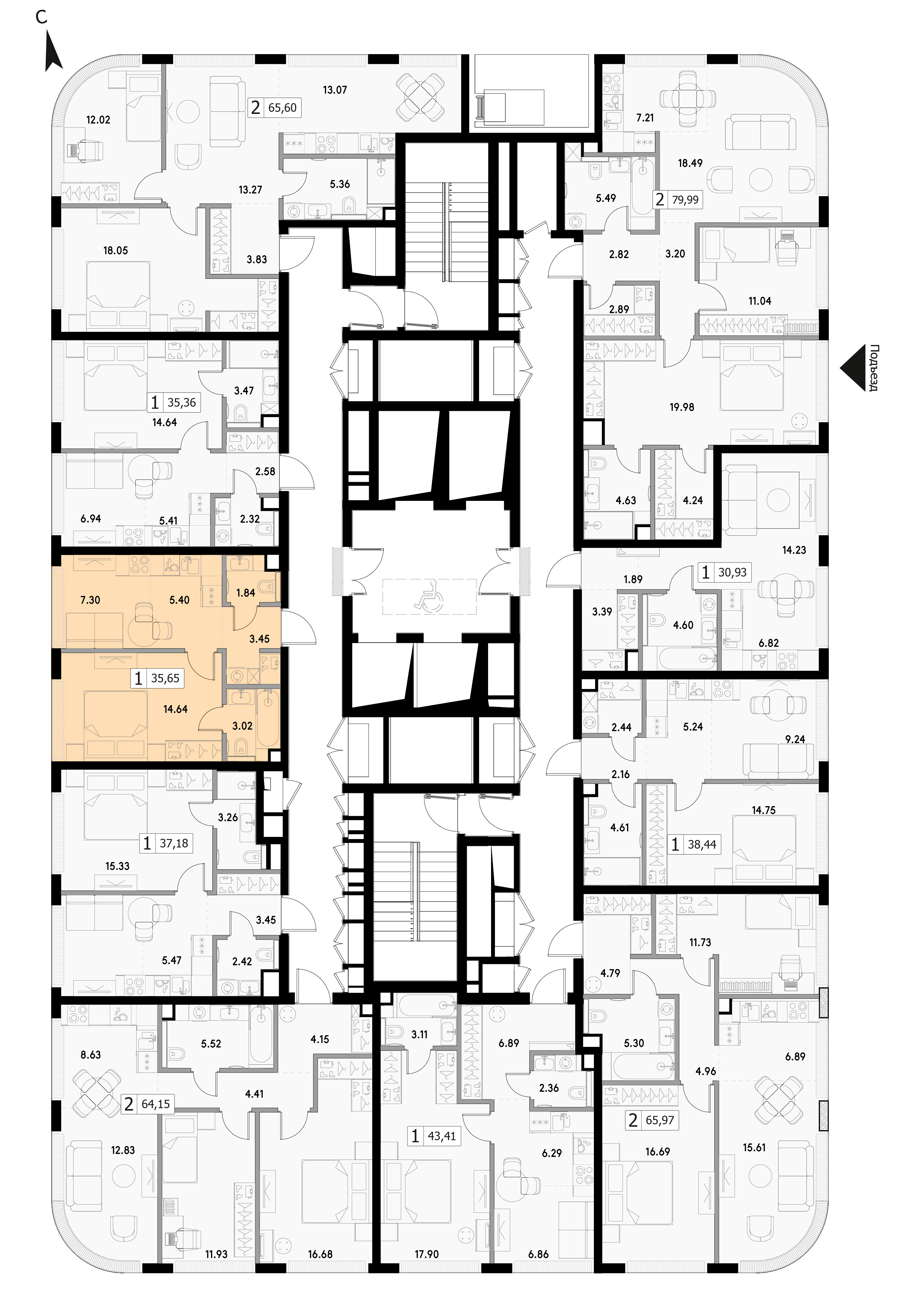Однокомнатная квартира 35.65 м², 32 этаж, ЖК «ВЕЕР» (VEER)