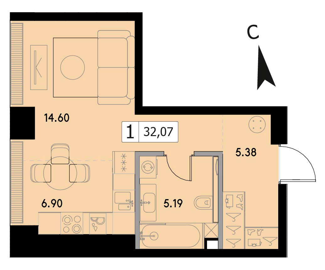Студия 30.67 м², 20 этаж, ЖК «ВЕЕР» (VEER)