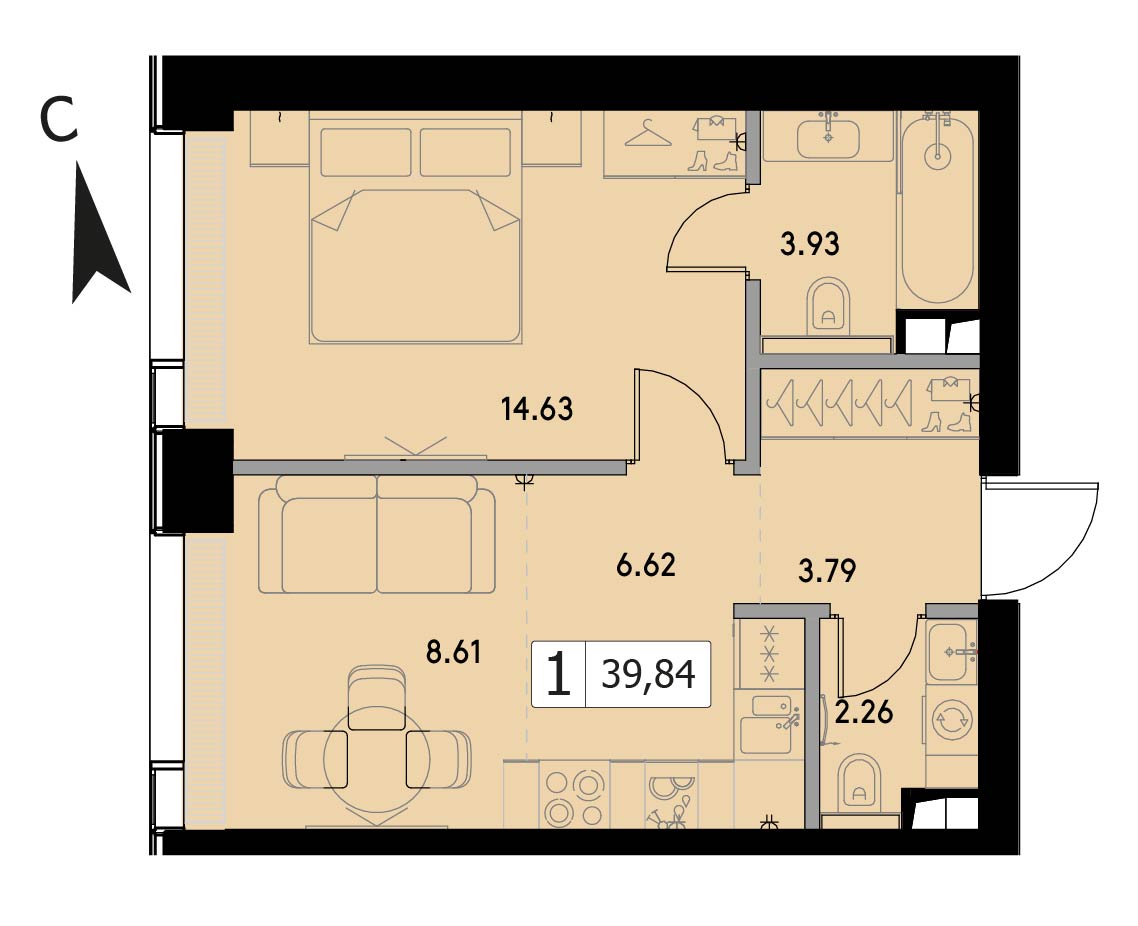 Однокомнатная квартира 37.27 м², 29 этаж, ЖК «ВЕЕР» (VEER)