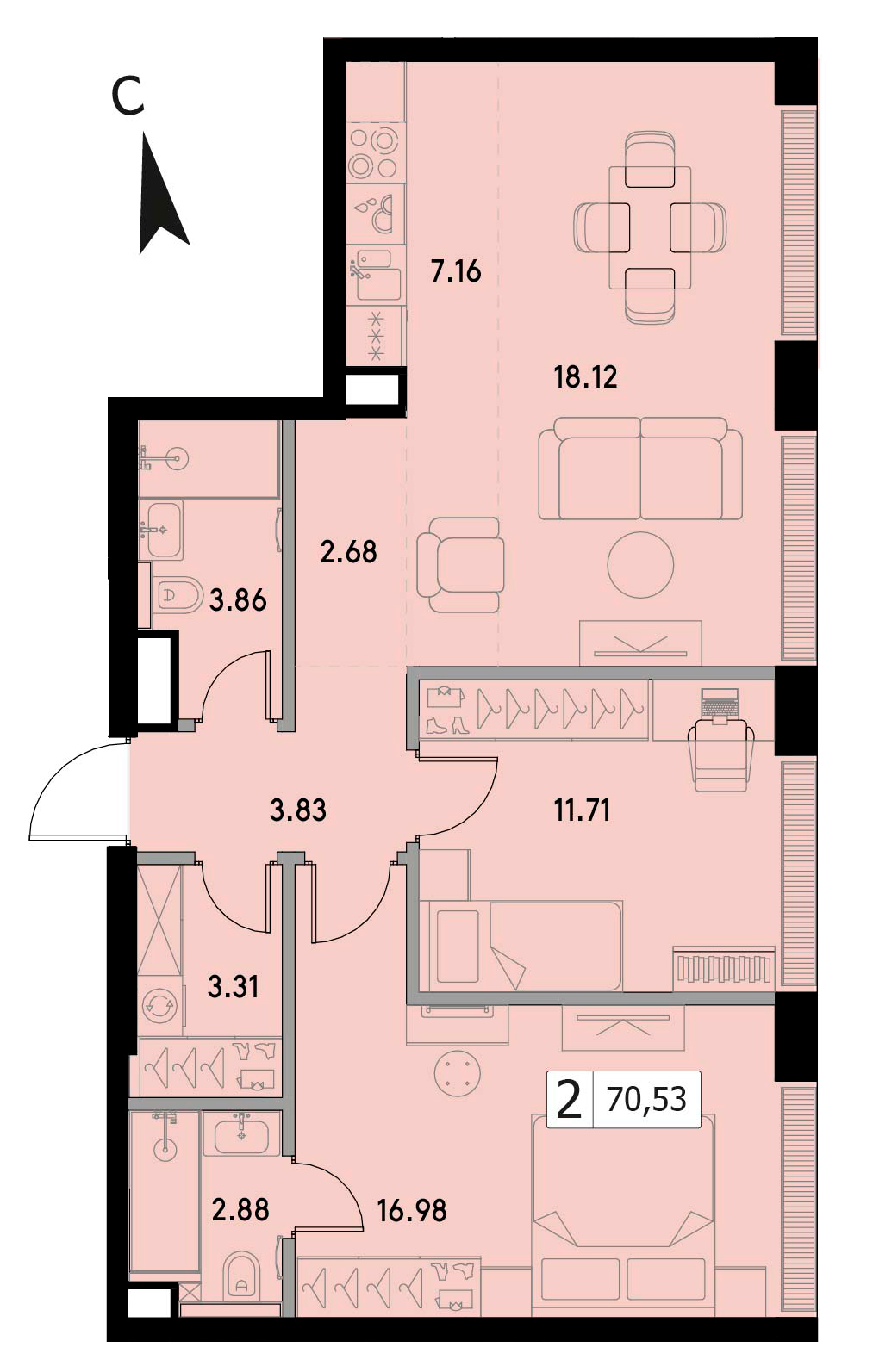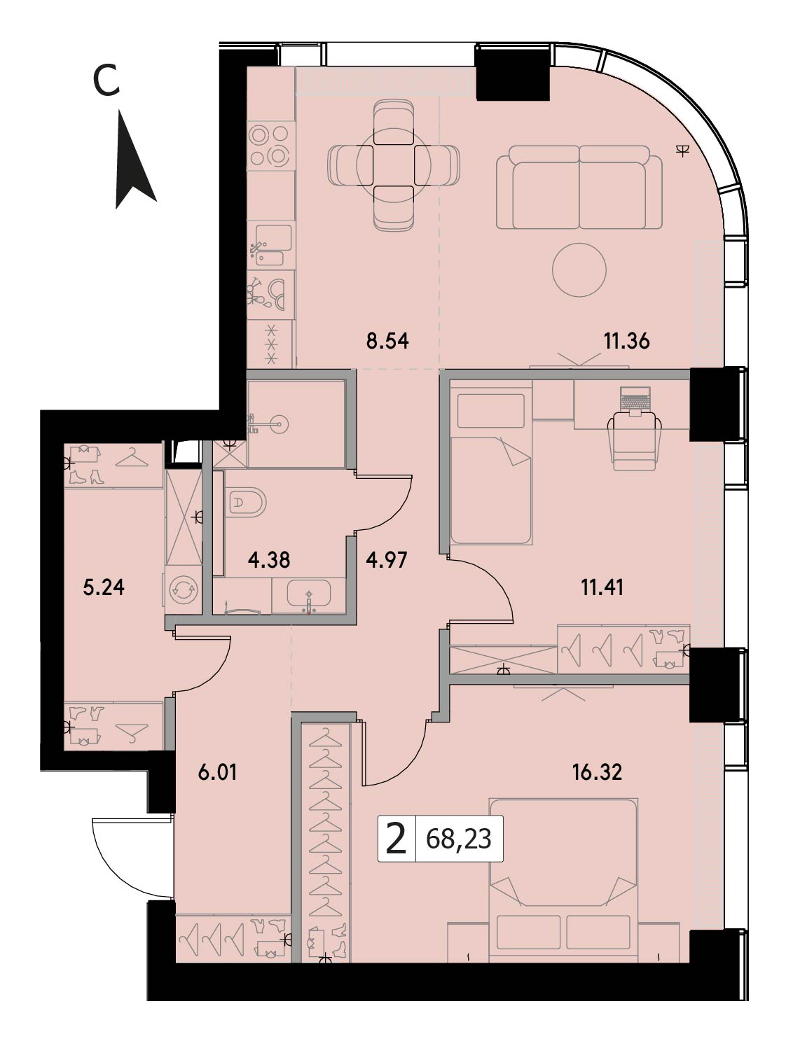 Двухкомнатная квартира 72.33 м², 51 этаж, ЖК «ВЕЕР» (VEER)
