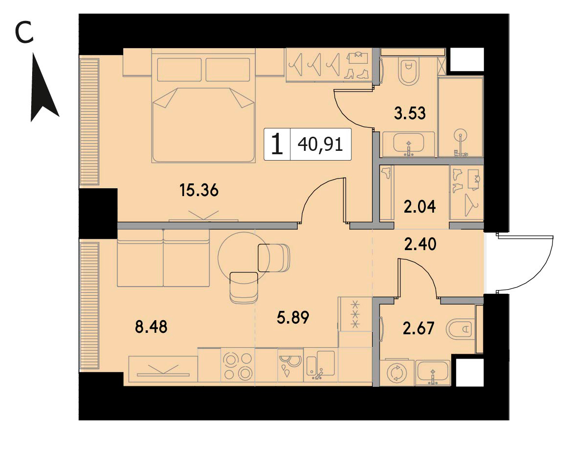 Однокомнатная квартира 44.4 м², 5 этаж, ЖК «ВЕЕР» (VEER)