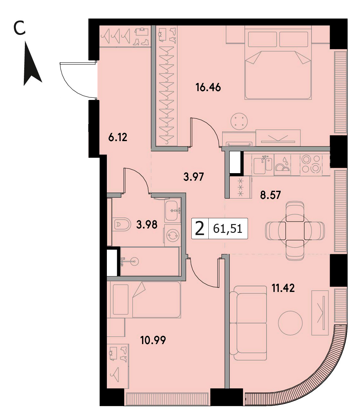 Двухкомнатная квартира 60.43 м², 17 этаж, ЖК «ВЕЕР» (VEER)