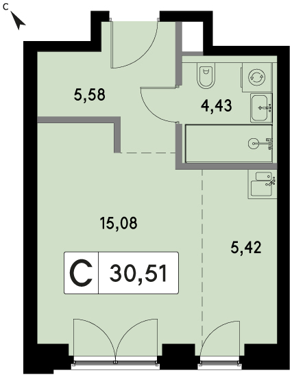 от 30.89 м2