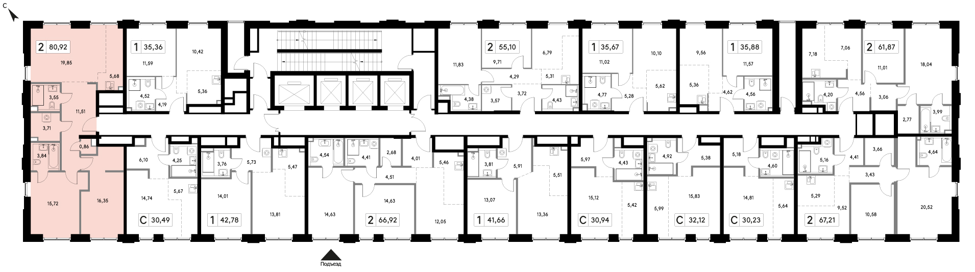 от 80.71 м2