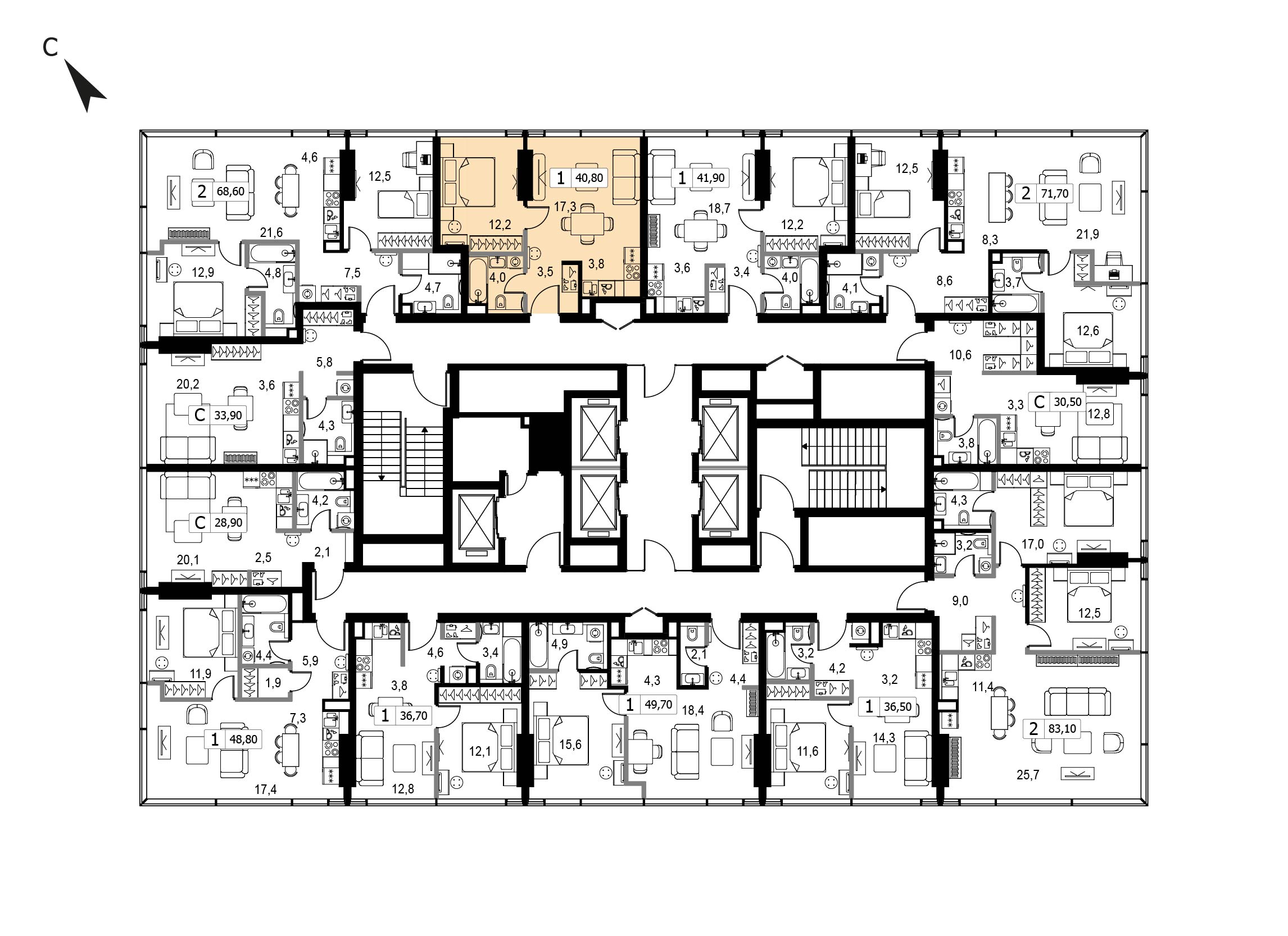 Однокомнатная квартира №747, 41 м², 15 этаж, МФК «SLAVA» (Слава)