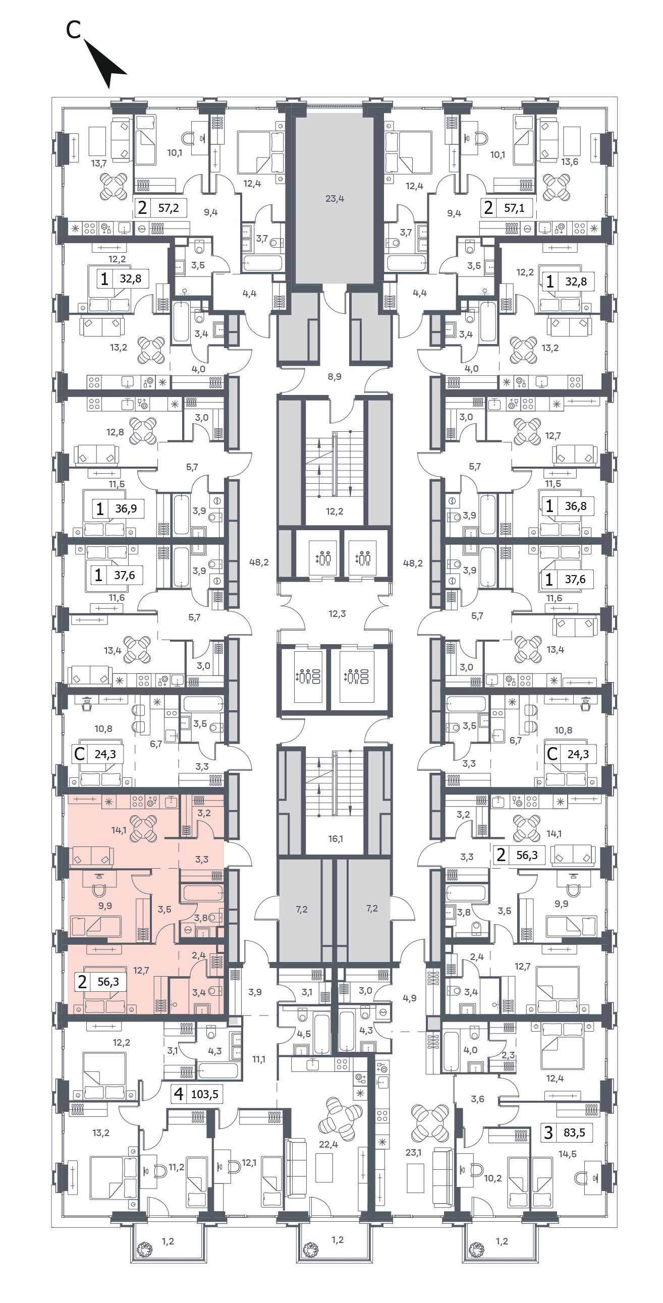 56.3 м²