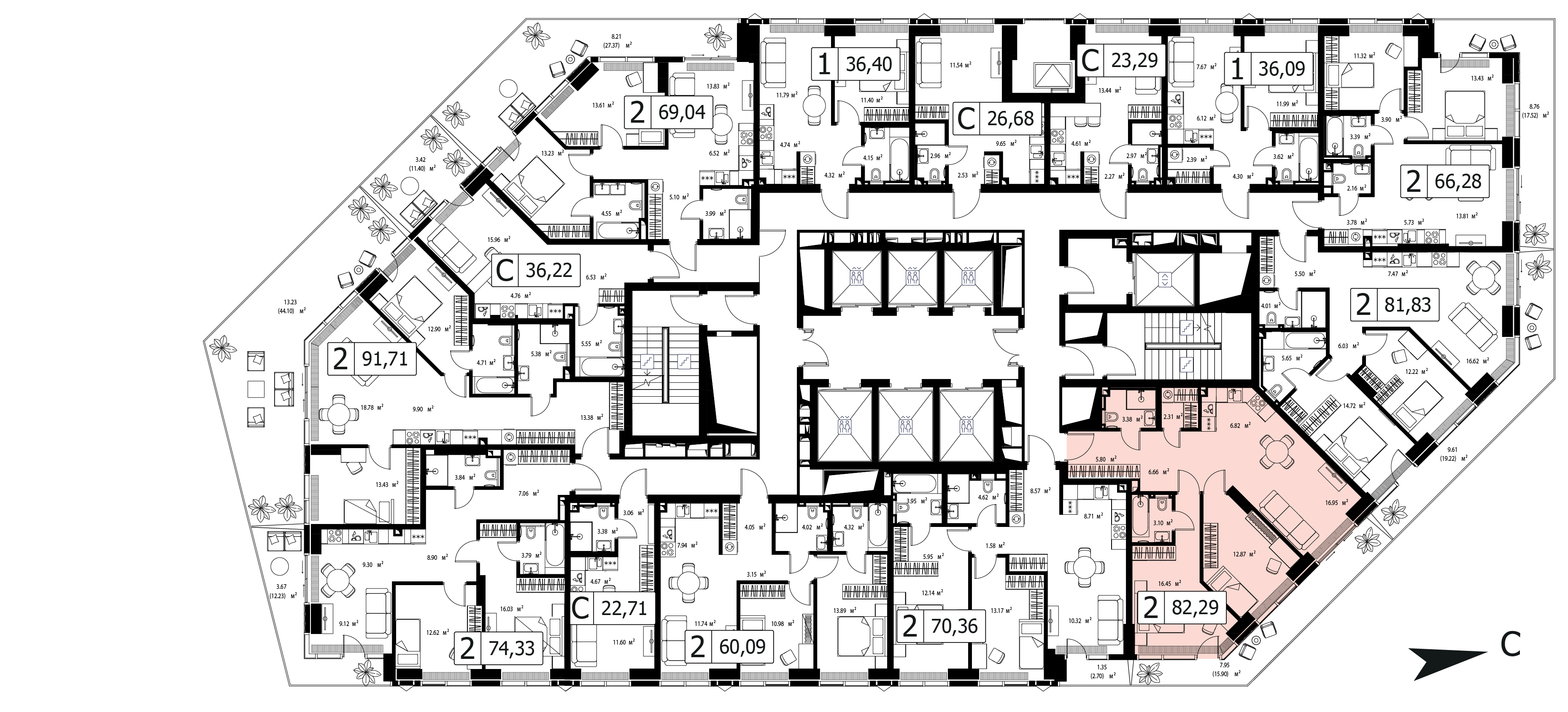 Двухкомнатная квартира №11513, 83.36 м², 15 этаж, «JOIS» (Джойс)