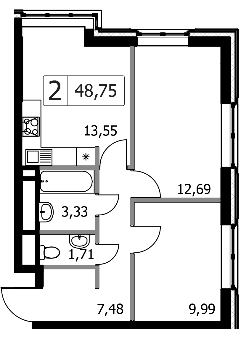 Однокомнатная квартира №129, 45.99 м², 12 этаж, Жилой комплекс «Городские истории»