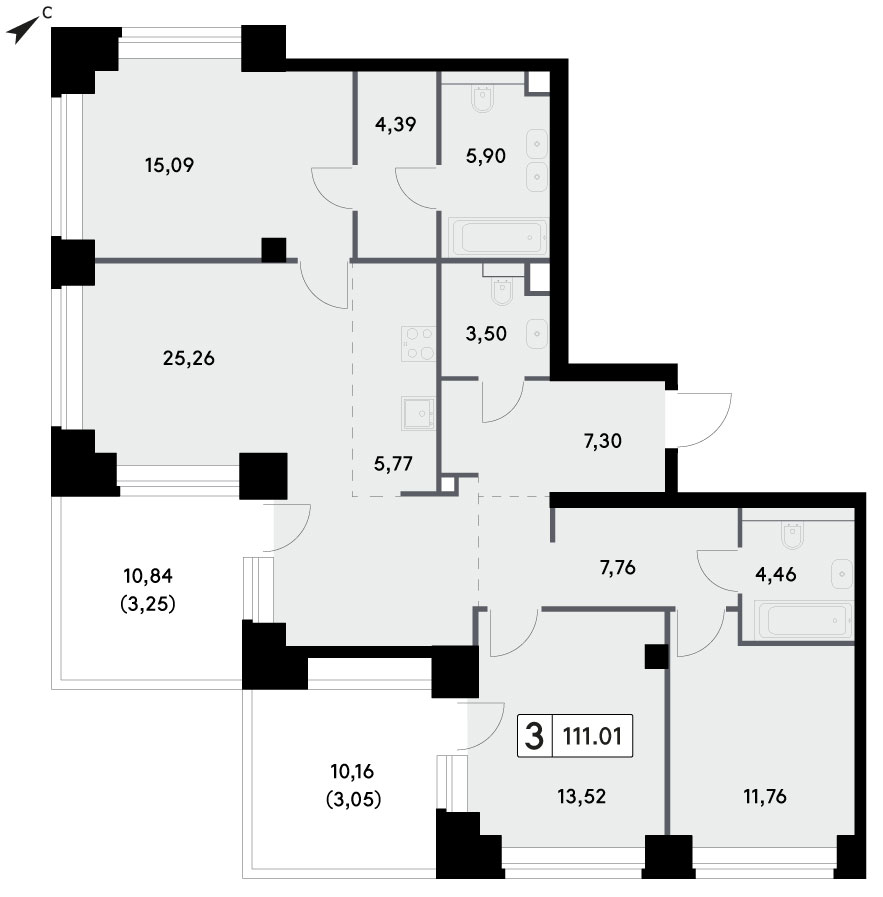 Трехкомнатная квартира №676, 107.57 м², 30 этаж, Жилой комплекс «NOVA» (Нова)