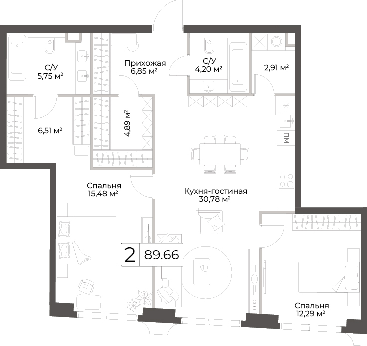 Комфортная трехкомнатная квартира квартира площадью 86.41 м² без отделки. Лот расположен на 21 этаже, корпуса 1 Клубный дом «Гранд Фили».Комплекс находится по адресу: г. Москва, Большая Филевская, 2, срок сдачи 2028г.. Это соединение удобной инфраструктуры городской застройки и зеленых зон отдыха.