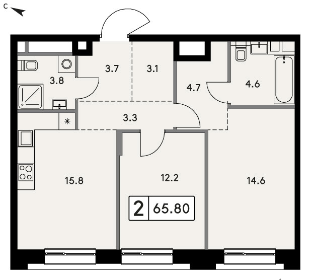 Однокомнатная квартира №138, 42.6 м², 5 этаж, Жилой комплекс «Мангазея на Речном»