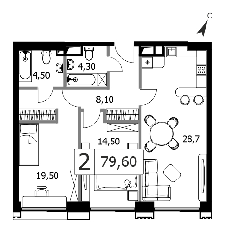 Трехкомнатная квартира №541, 78.8 м², 40 этаж, Жилой комплекс «Will Towers» (Уилл Тауэрс)