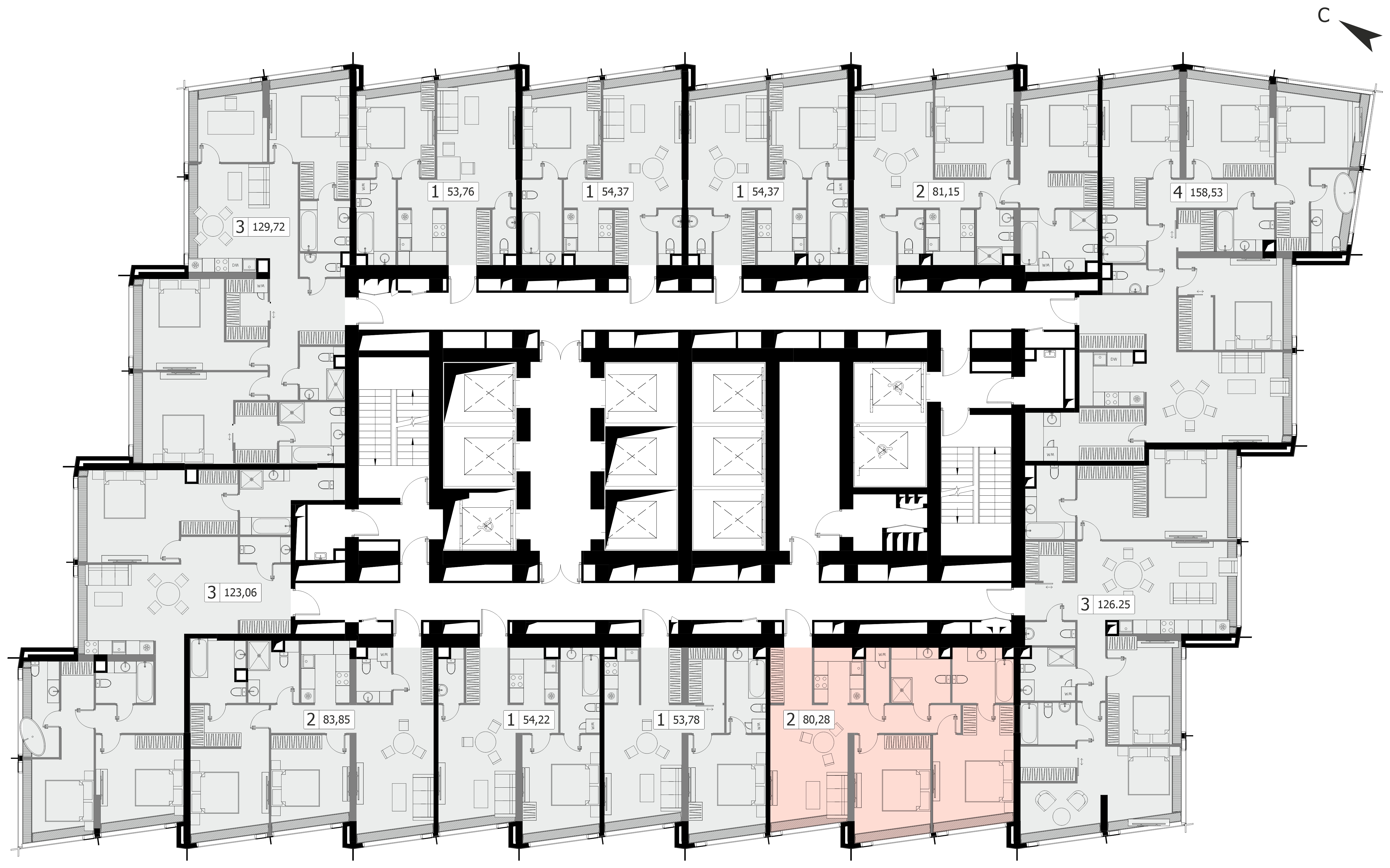 Двухкомнатная квартира №515, 80.8 м², 43 этаж, МФК «Дом Дау»