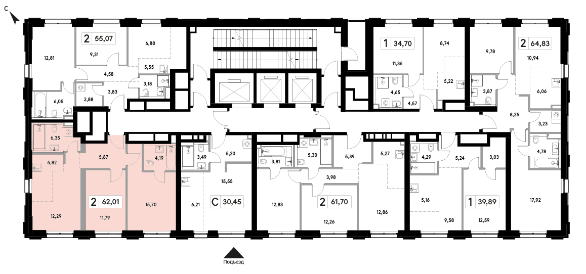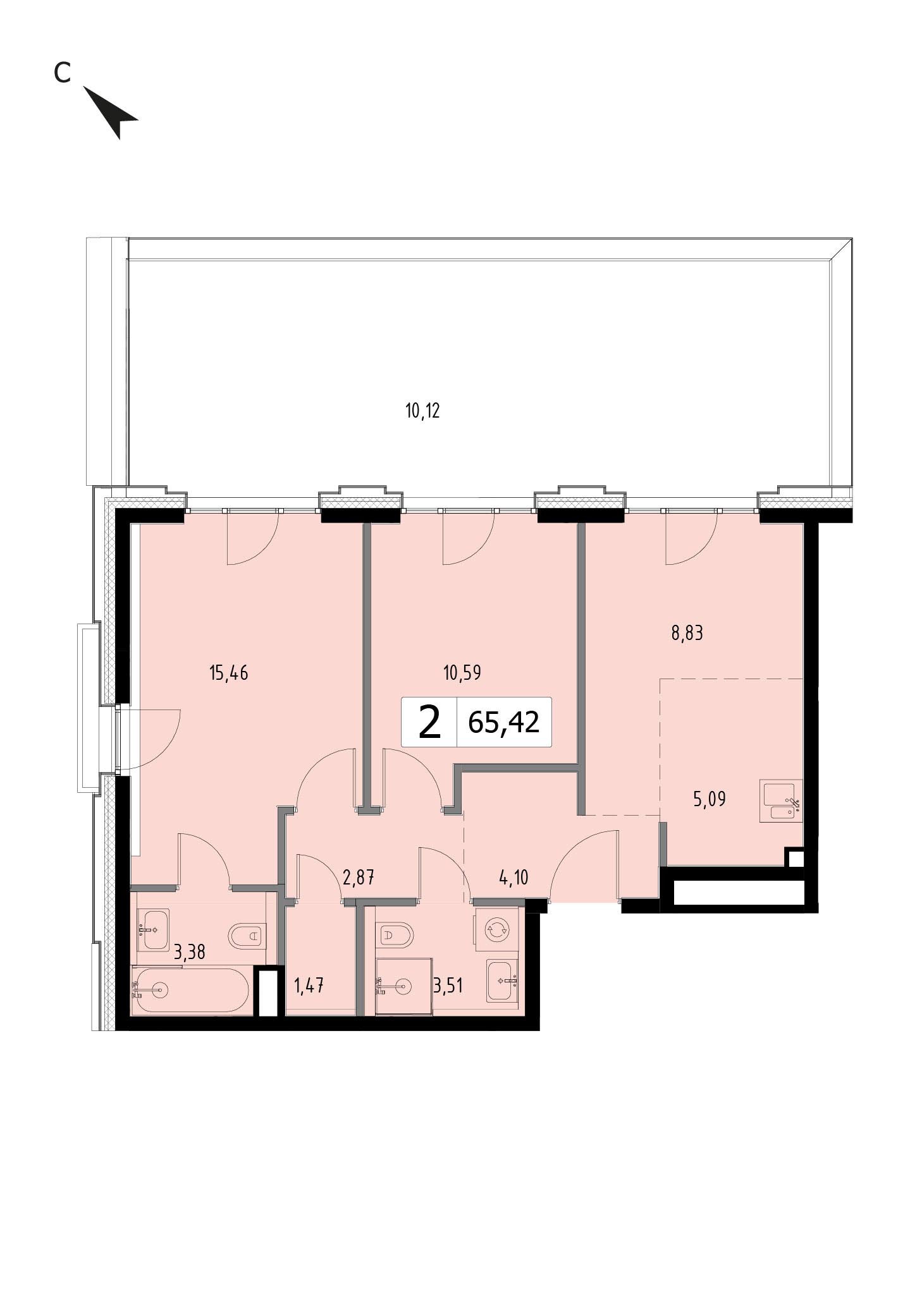Двухкомнатная квартира 63.34 м², 8 этаж, ЖК «Селигер Сити»