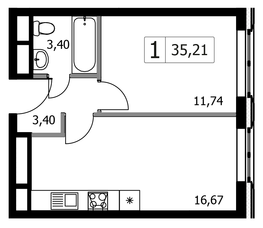 Однокомнатная квартира 33.28 м², 17 этаж, Жилой комплекс «Городские истории»