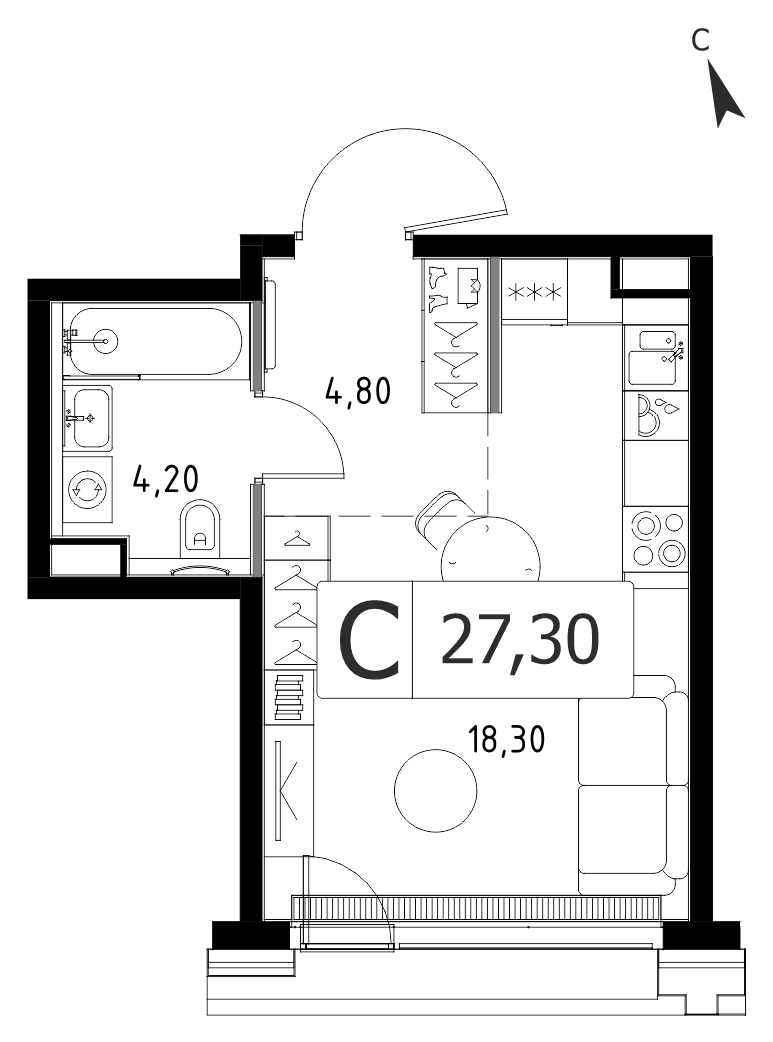 Однокомнатная квартира 27.6 м², 3 этаж, ЖК «СЕТ» (SET)