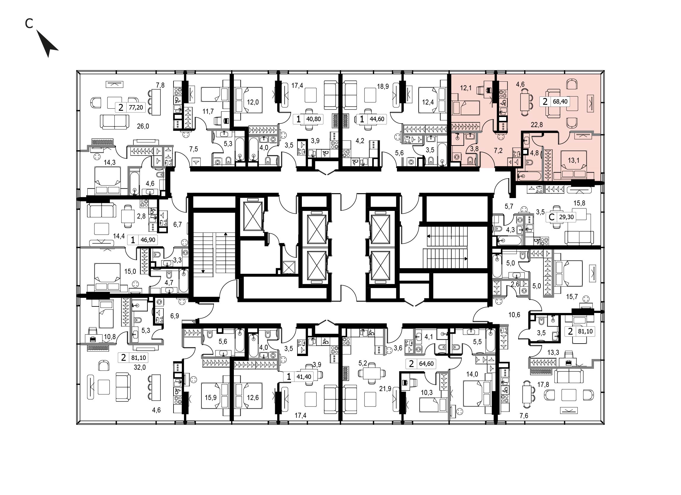 Двухкомнатная квартира 80 м², 15 этаж, МФК «SLAVA» (Слава)