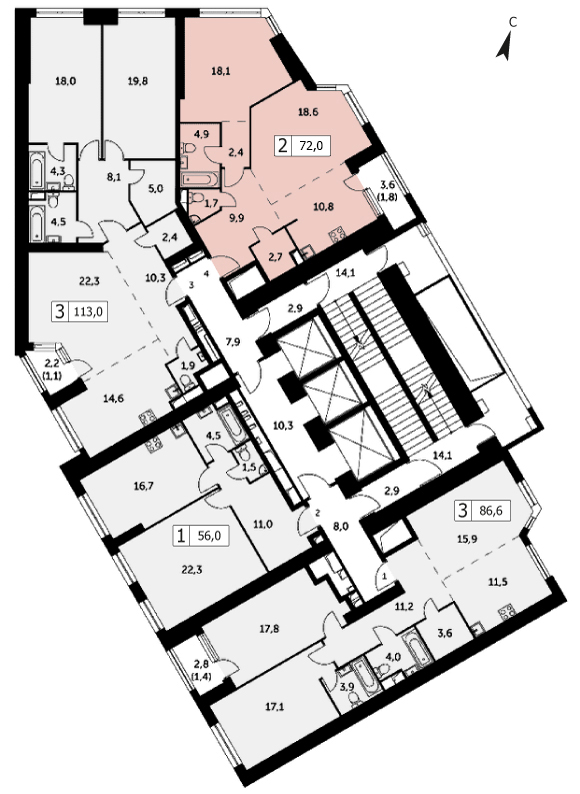 Двухкомнатная квартира 72 м², 13 этаж, Жилой комплекс «Архитектор»