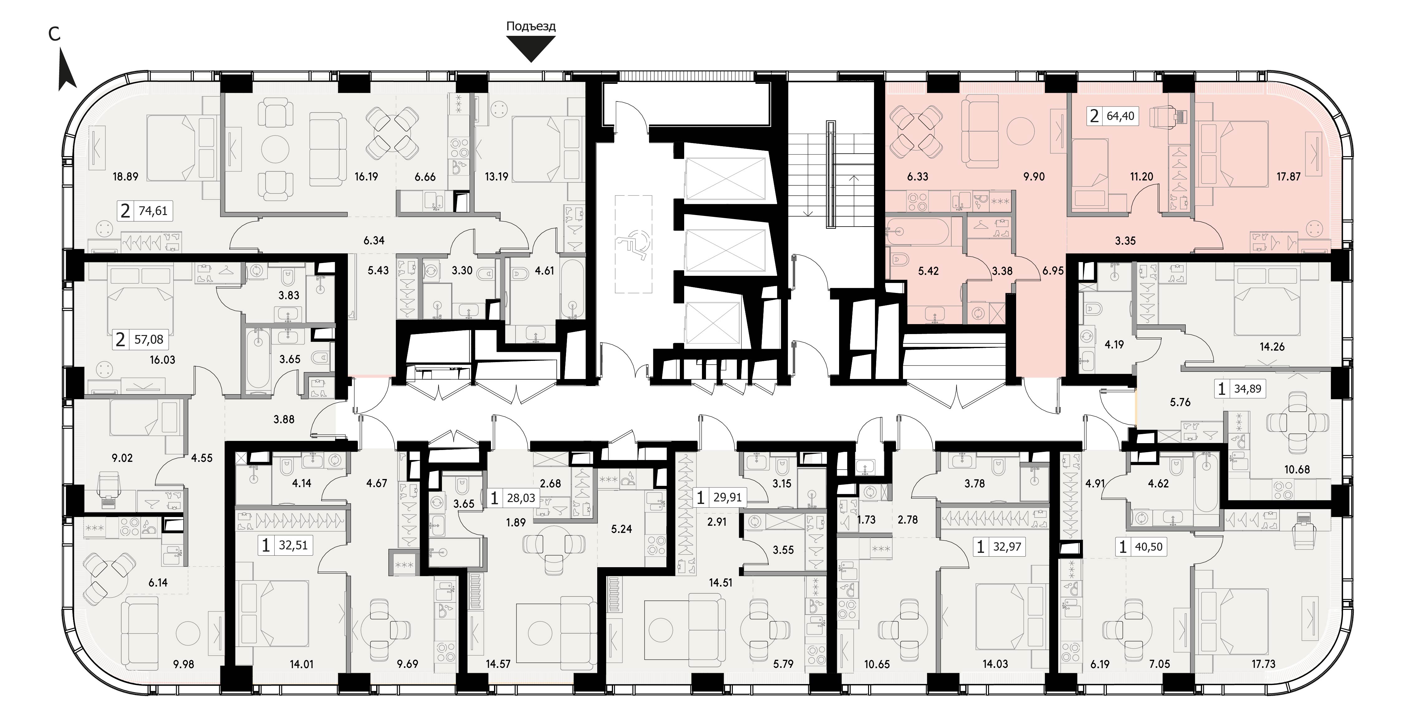 Двухкомнатная квартира 64.4 м², 2 этаж, ЖК «ВЕЕР» (VEER)