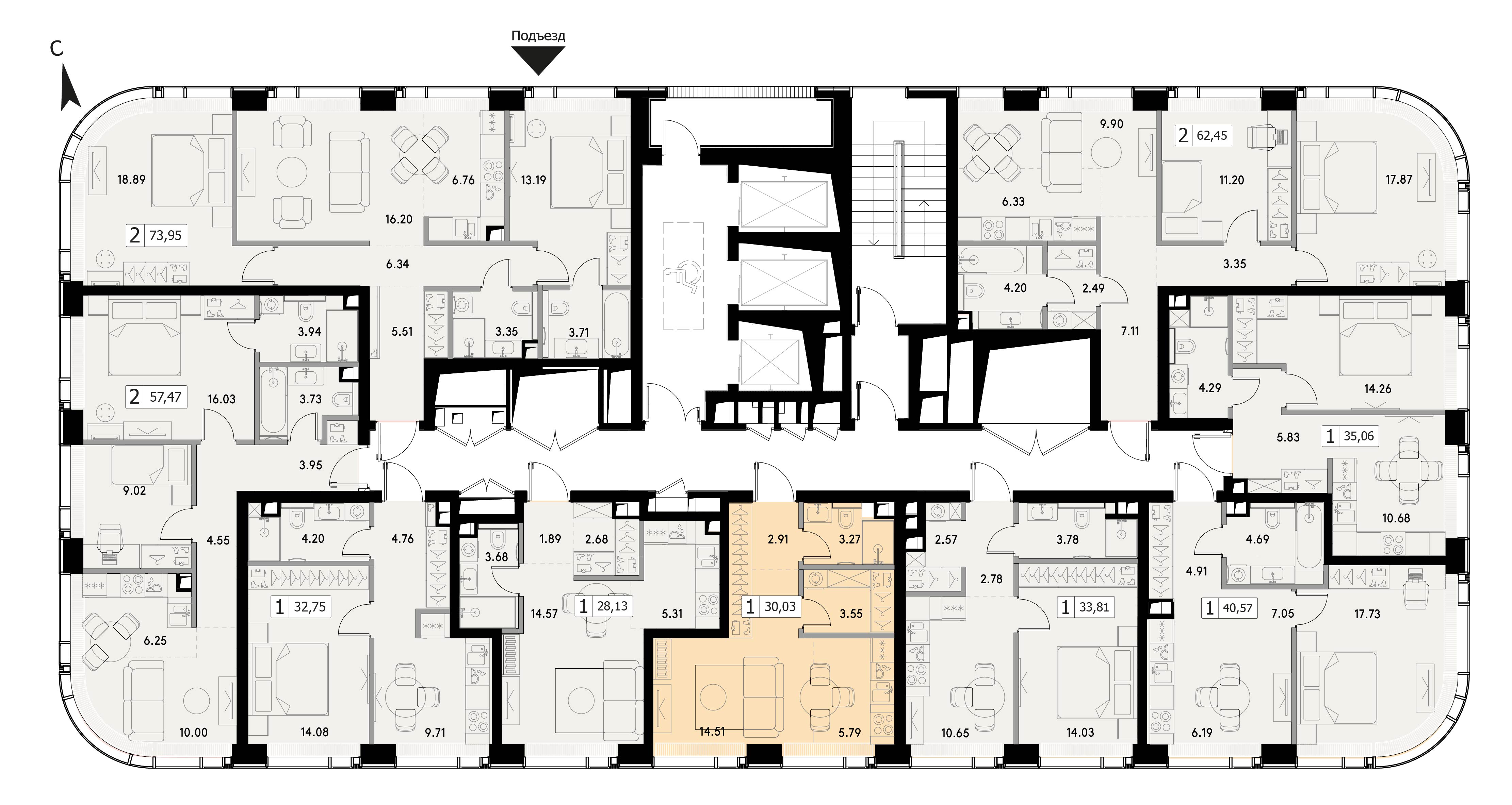 Однокомнатная квартира 30.03 м², 3 этаж, ЖК «ВЕЕР» (VEER)