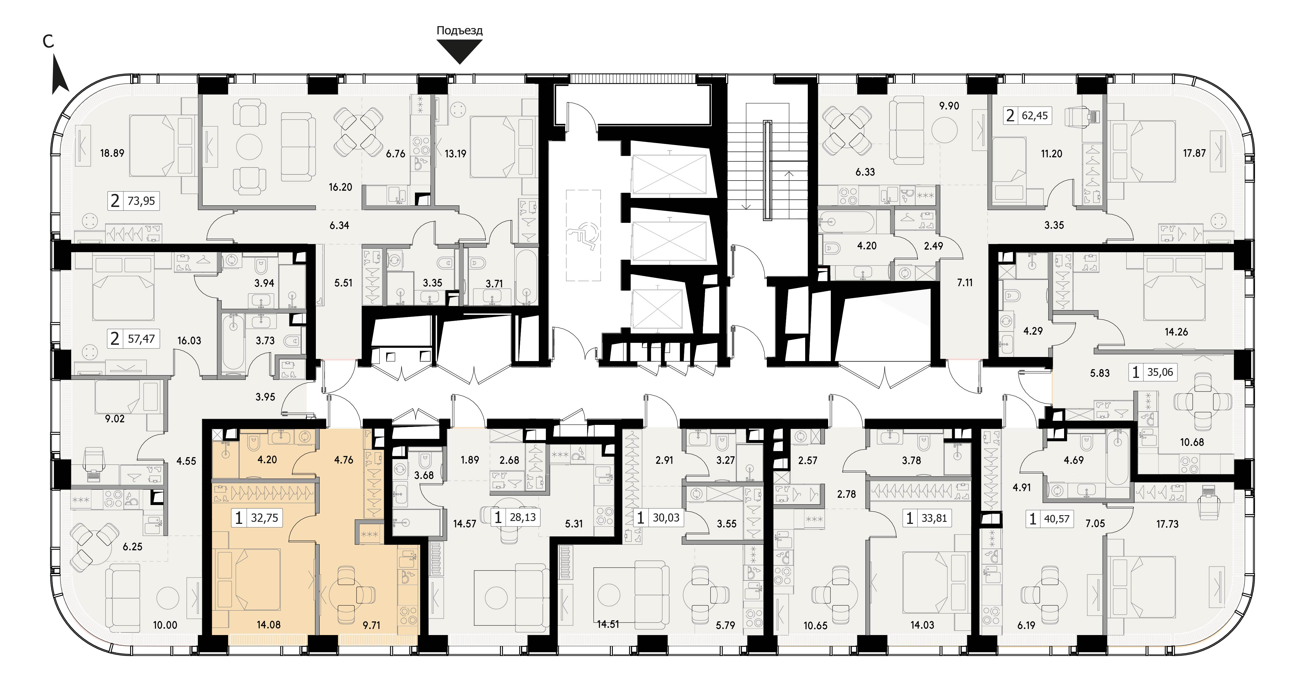 Однокомнатная квартира 32.75 м², 3 этаж, ЖК «ВЕЕР» (VEER)