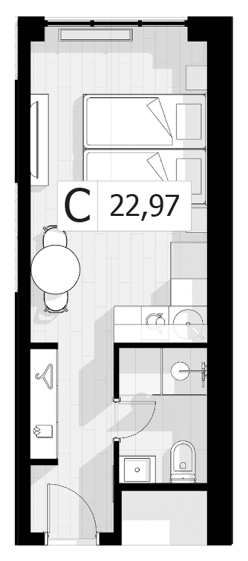 Студия 22.58 м², 15 этаж, Гостиничный комплекс «Аметист»