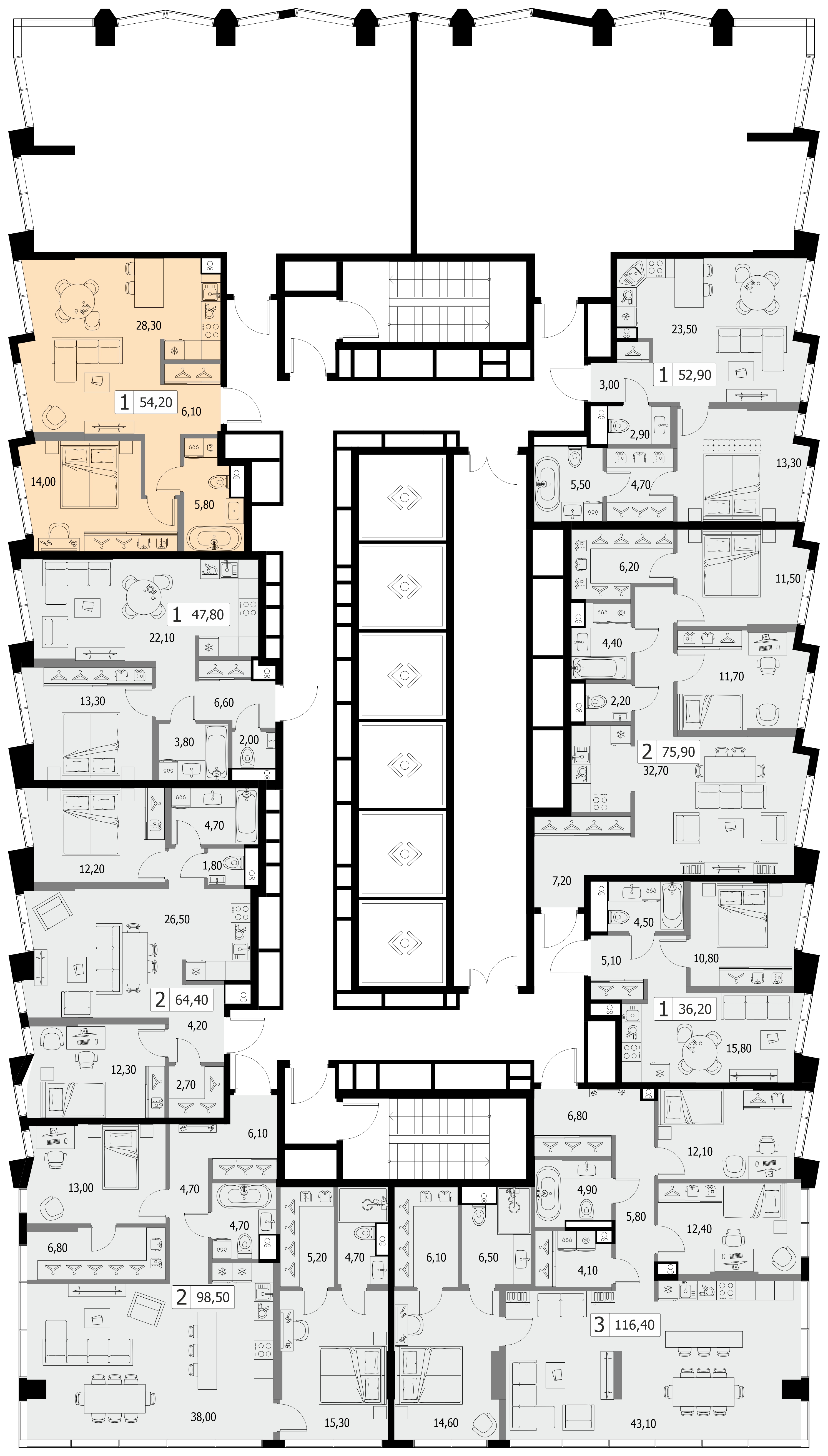 Комфортная двухкомнатная квартира квартира площадью 81.5 м² без отделки. Лот расположен на 52 этаже, корпуса 7.3 жилого комплекса «Северный порт».Комплекс находится по адресу: г. Москва, Ленинградское шоссе, срок сдачи 2028г.. Это соединение удобной инфраструктуры городской застройки и зеленых зон отдыха.