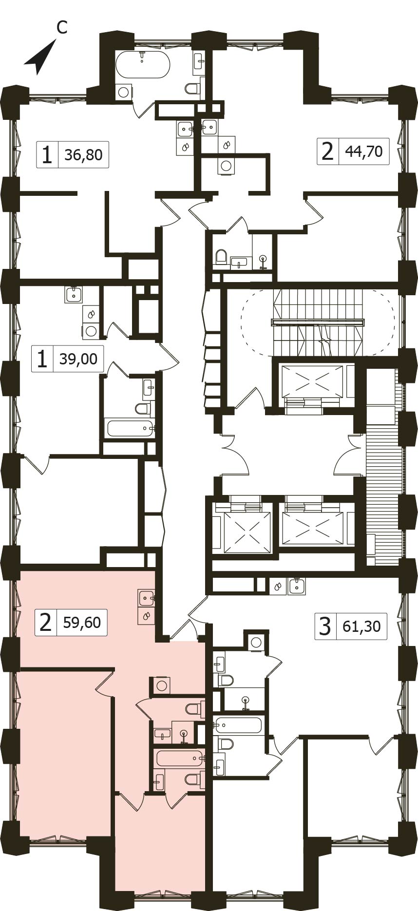 Двухкомнатная квартира 59.6 м², 12 этаж, ЖК «ДД:OO:MM. Дом на Часовой» (DD:OO:MM)