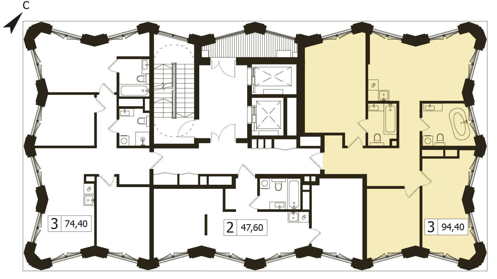 Трехкомнатная квартира 94.4 м², 8 этаж, ЖК «ДД:OO:MM. Дом на Часовой» (DD:OO:MM)