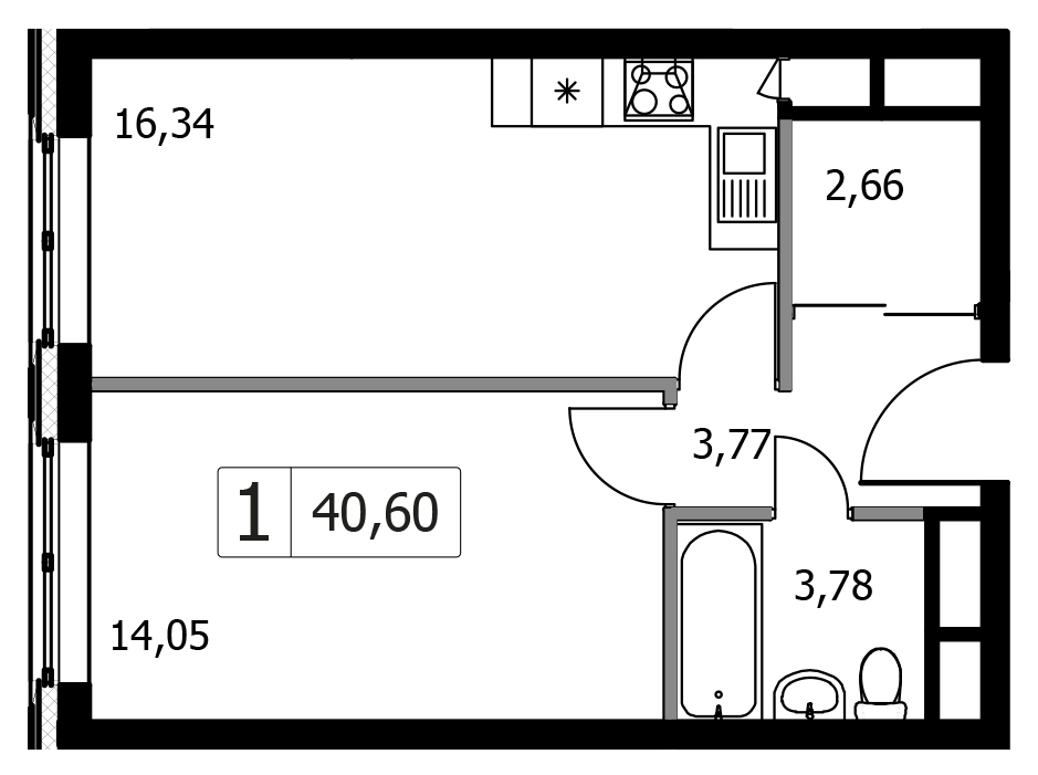 Однокомнатная квартира 40.6 м², 15 этаж, ЖК «Городские истории»
