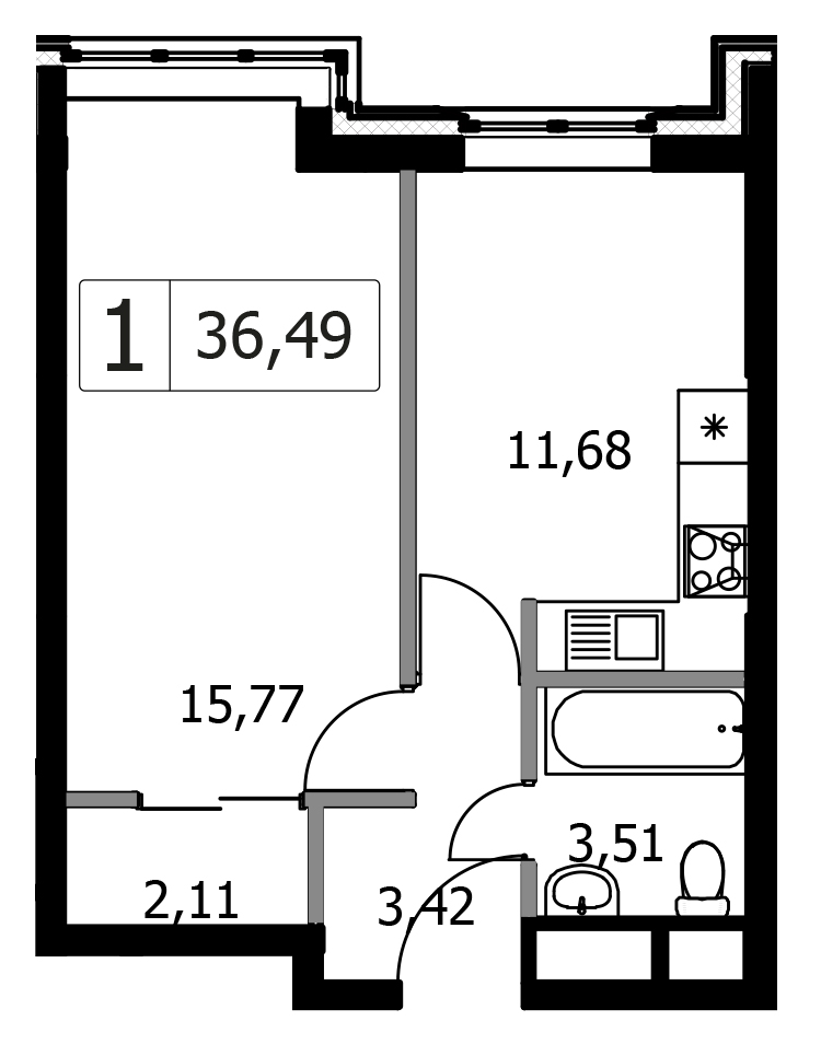 Однокомнатная квартира 36.73 м², 11 этаж, Жилой комплекс «Городские истории»
