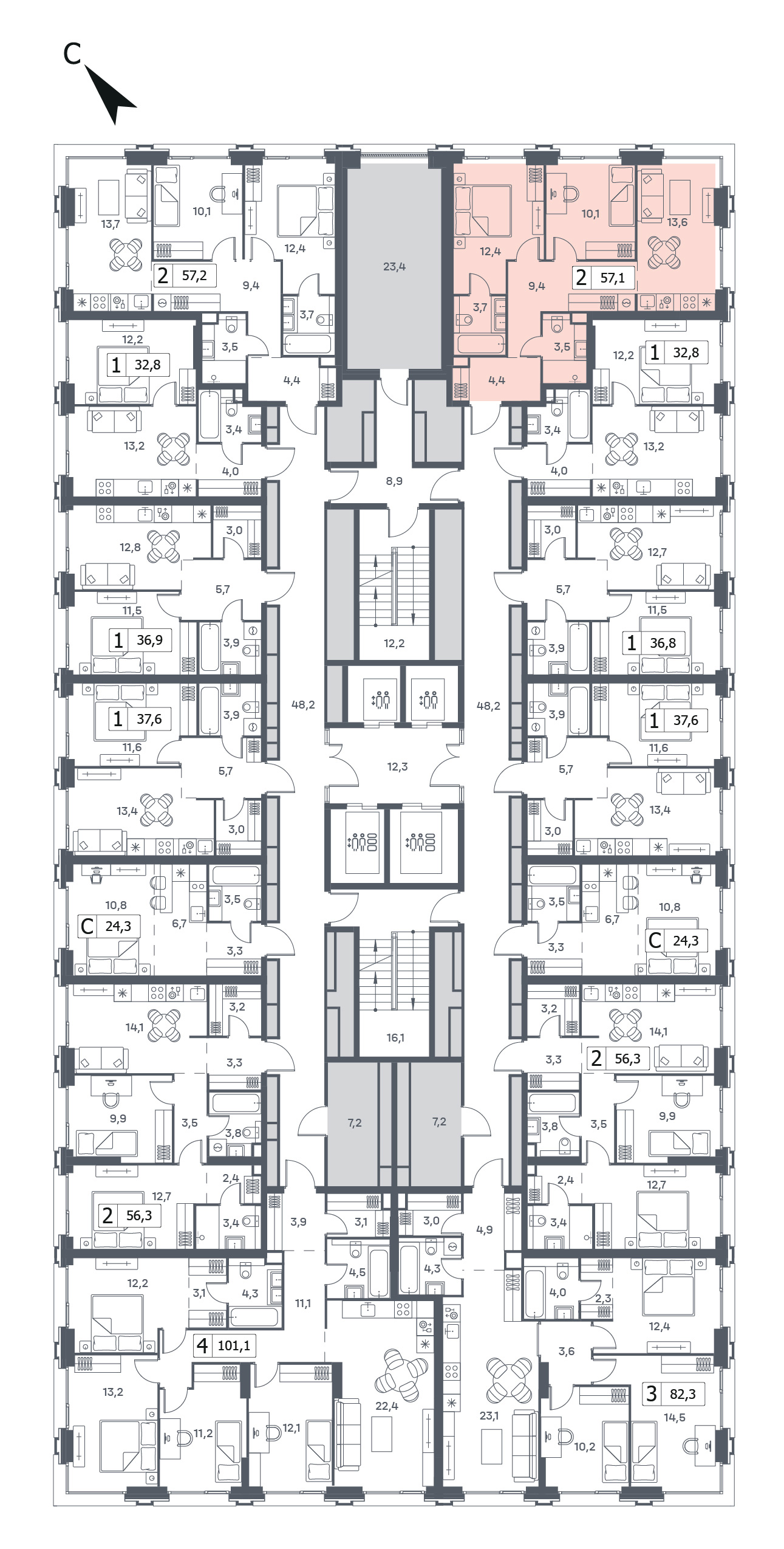 57.1 м²