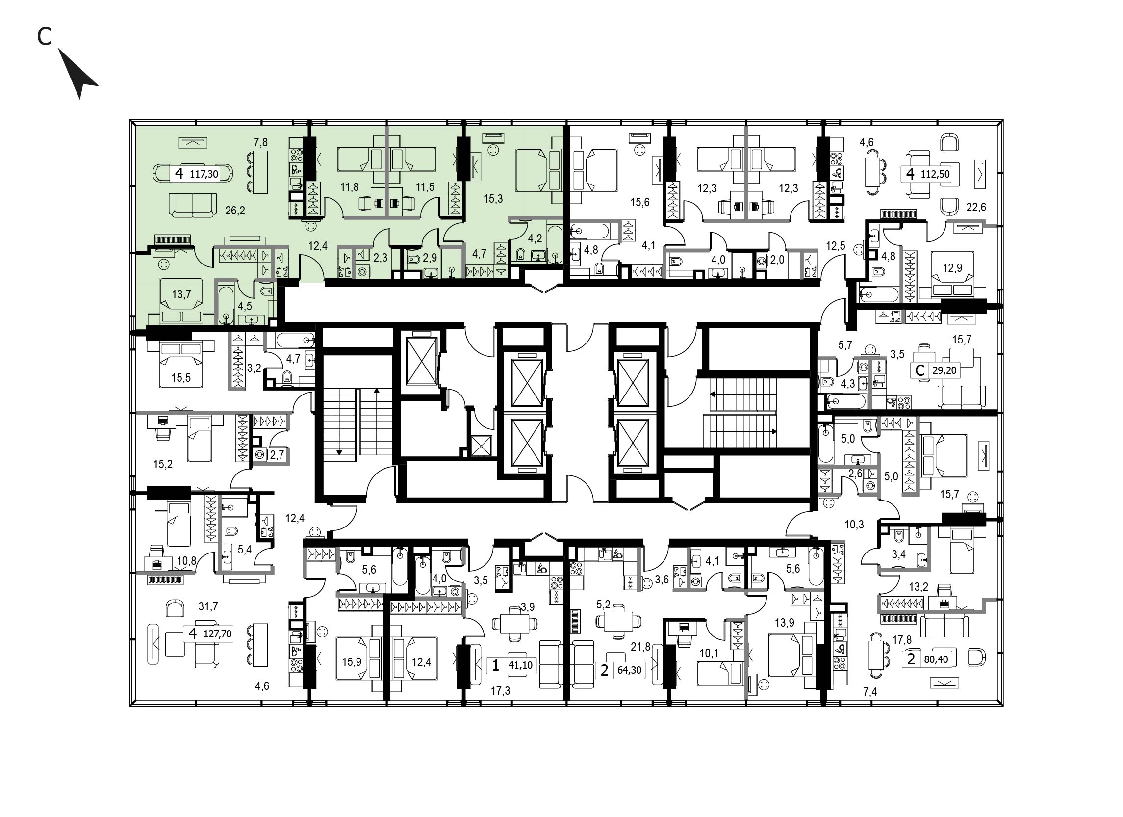 Четырехкомнатная квартира 115.1 м², 7 этаж, МФК «SLAVA» (Слава)
