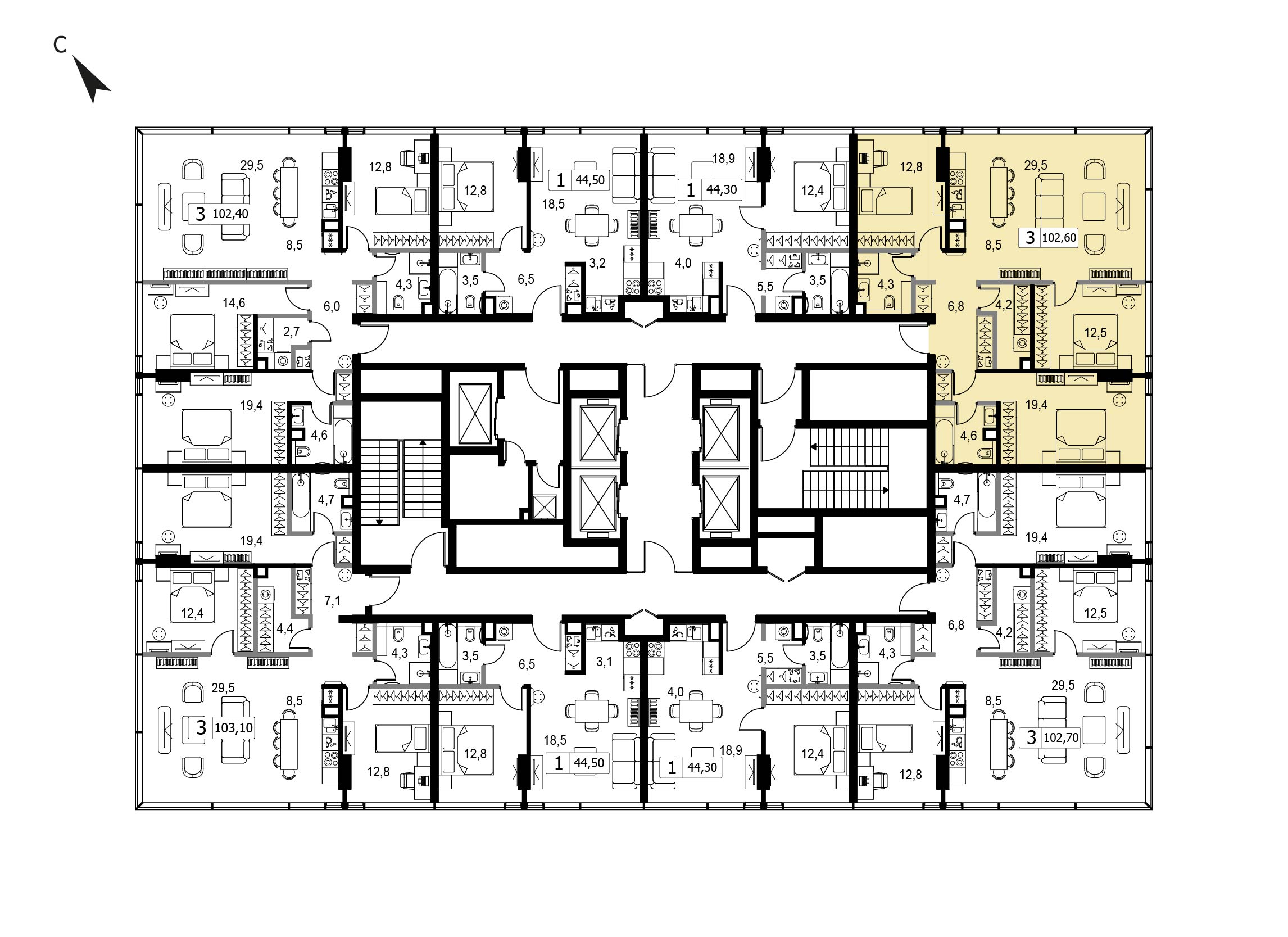 100.7 м²