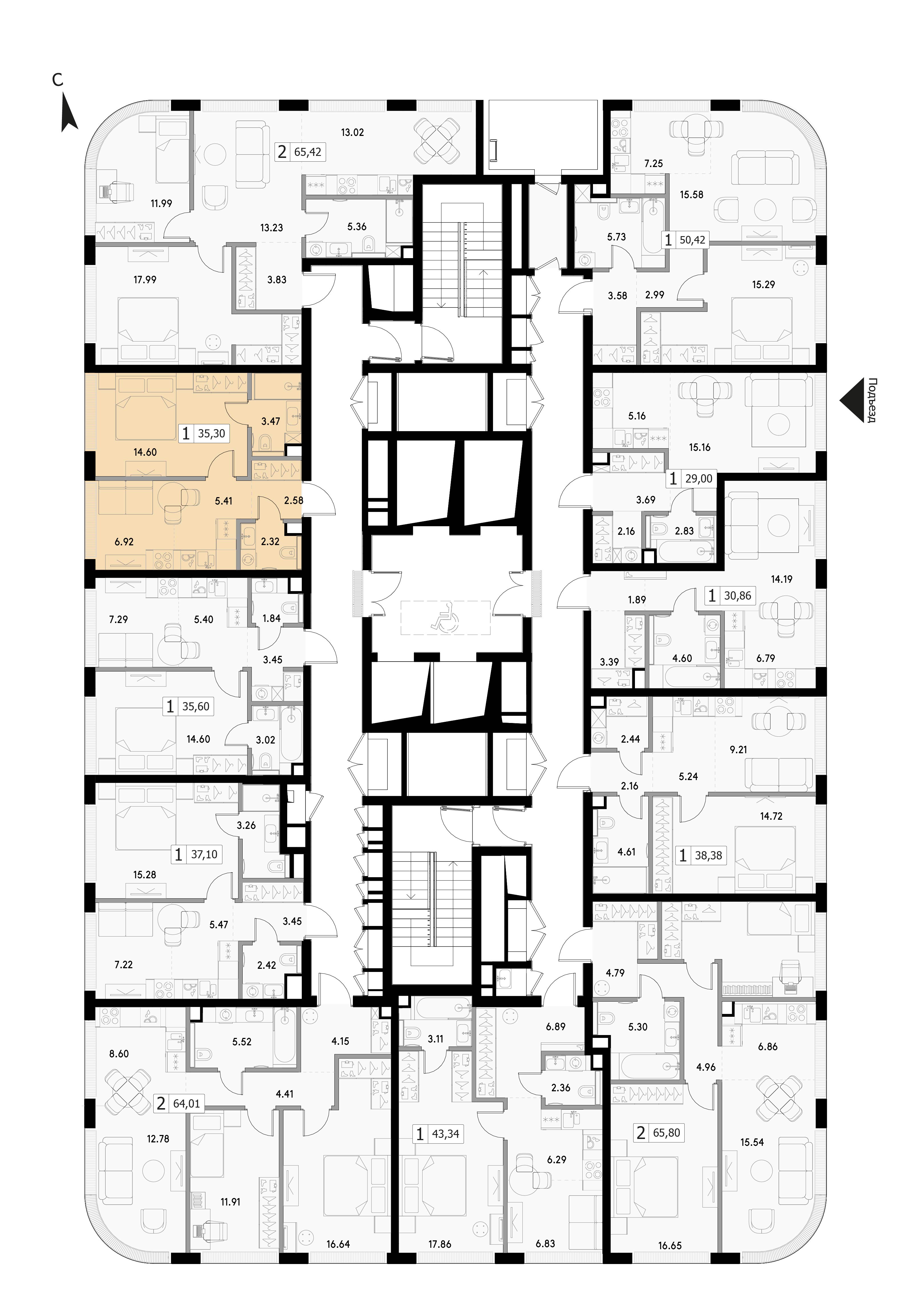Однокомнатная квартира 35.3 м², 12 этаж, Жилой комплекс «VEER» (Веер)