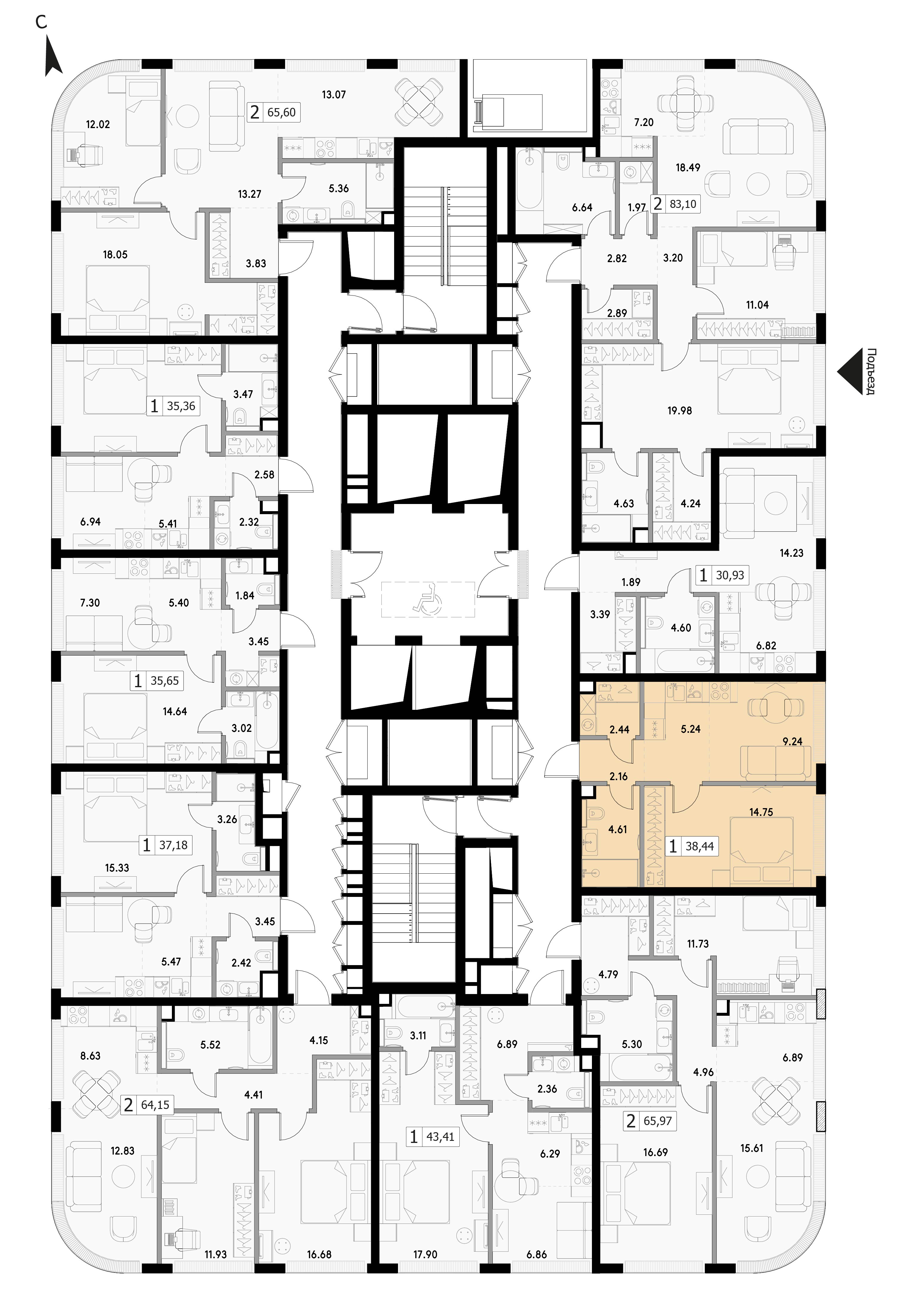 38.44 м²