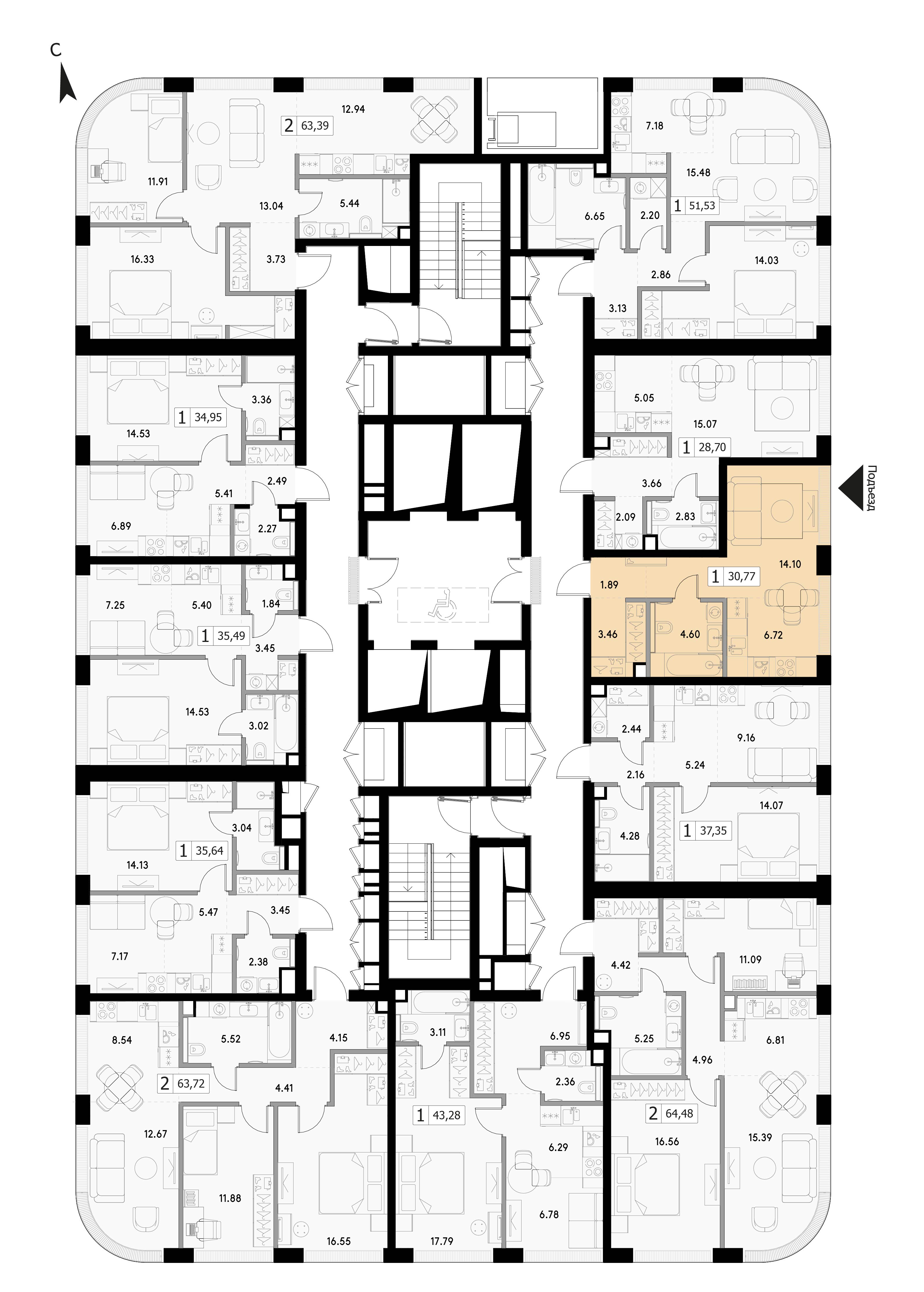 Однокомнатная квартира 30.77 м², 3 этаж, Жилой комплекс «VEER» (Веер)