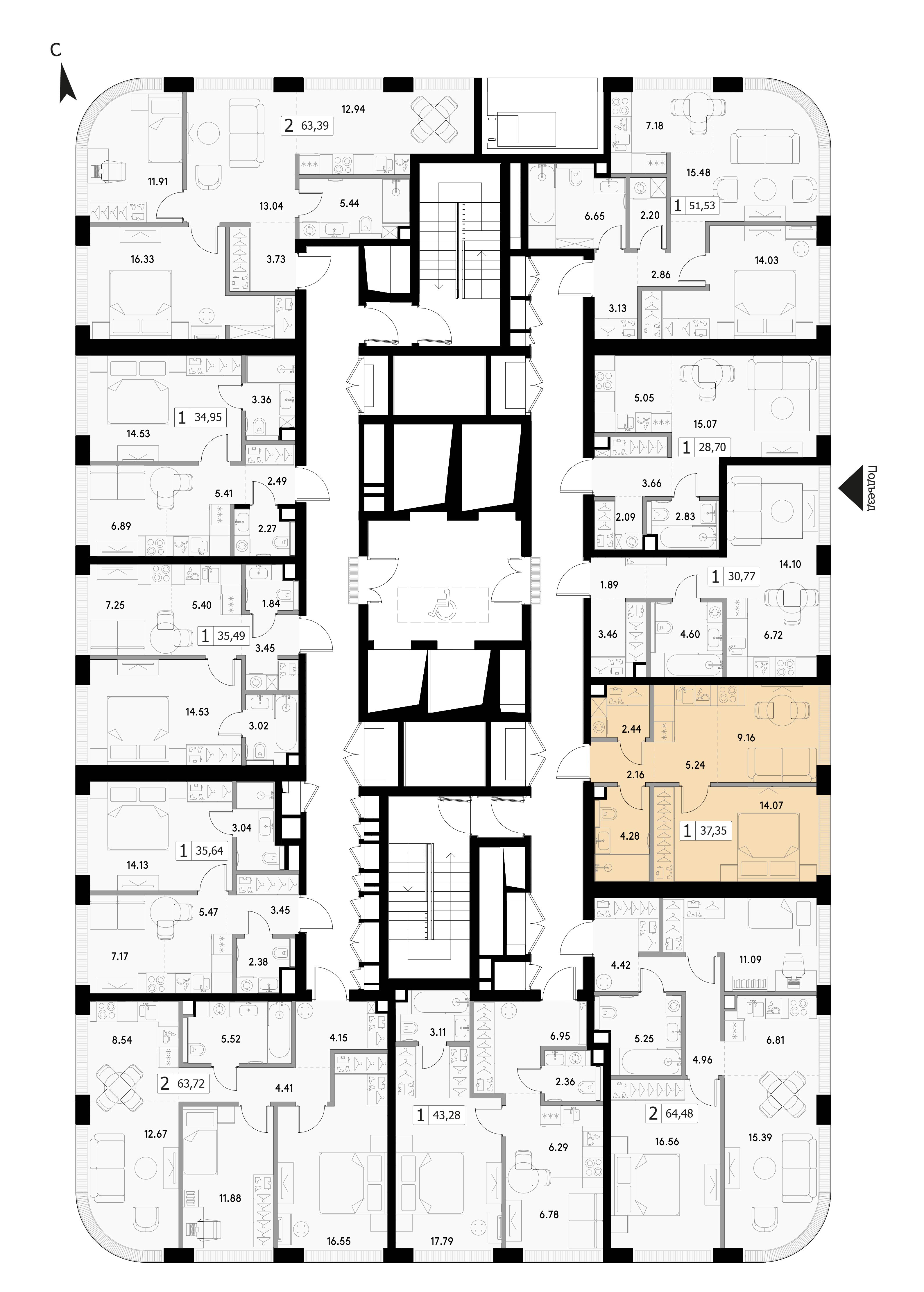 Однокомнатная квартира 37.35 м², 3 этаж, Жилой комплекс «VEER» (Веер)