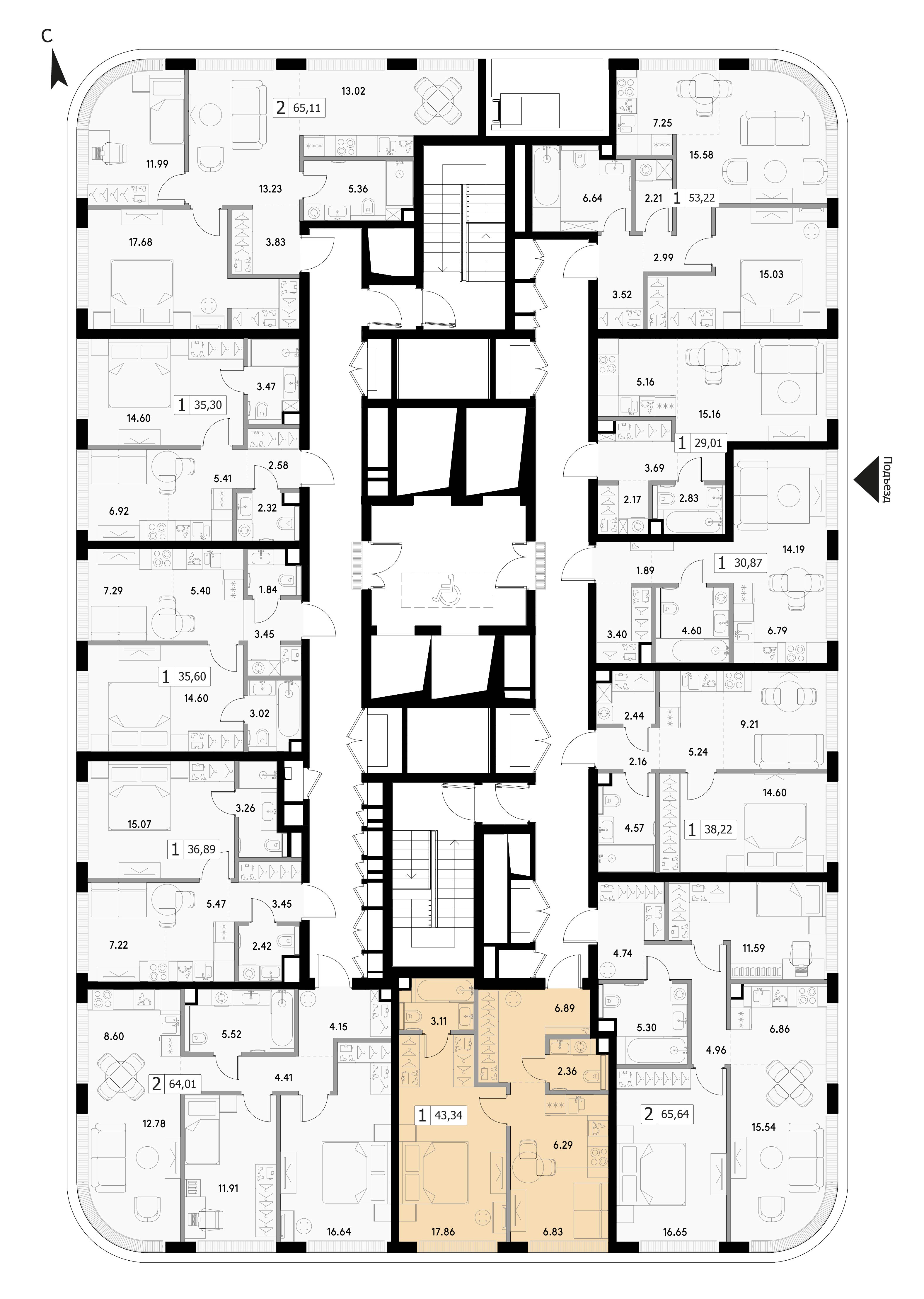 Комфортная однокомнатная квартира квартира площадью 43.34 м² без отделки. Лот расположен на 9 этаже, корпуса 1.2 жилого комплекса «VEER» (Веер).Комплекс находится по адресу: г. Москва, ул Верейская. Это соединение удобной инфраструктуры городской застройки и зеленых зон отдыха.
