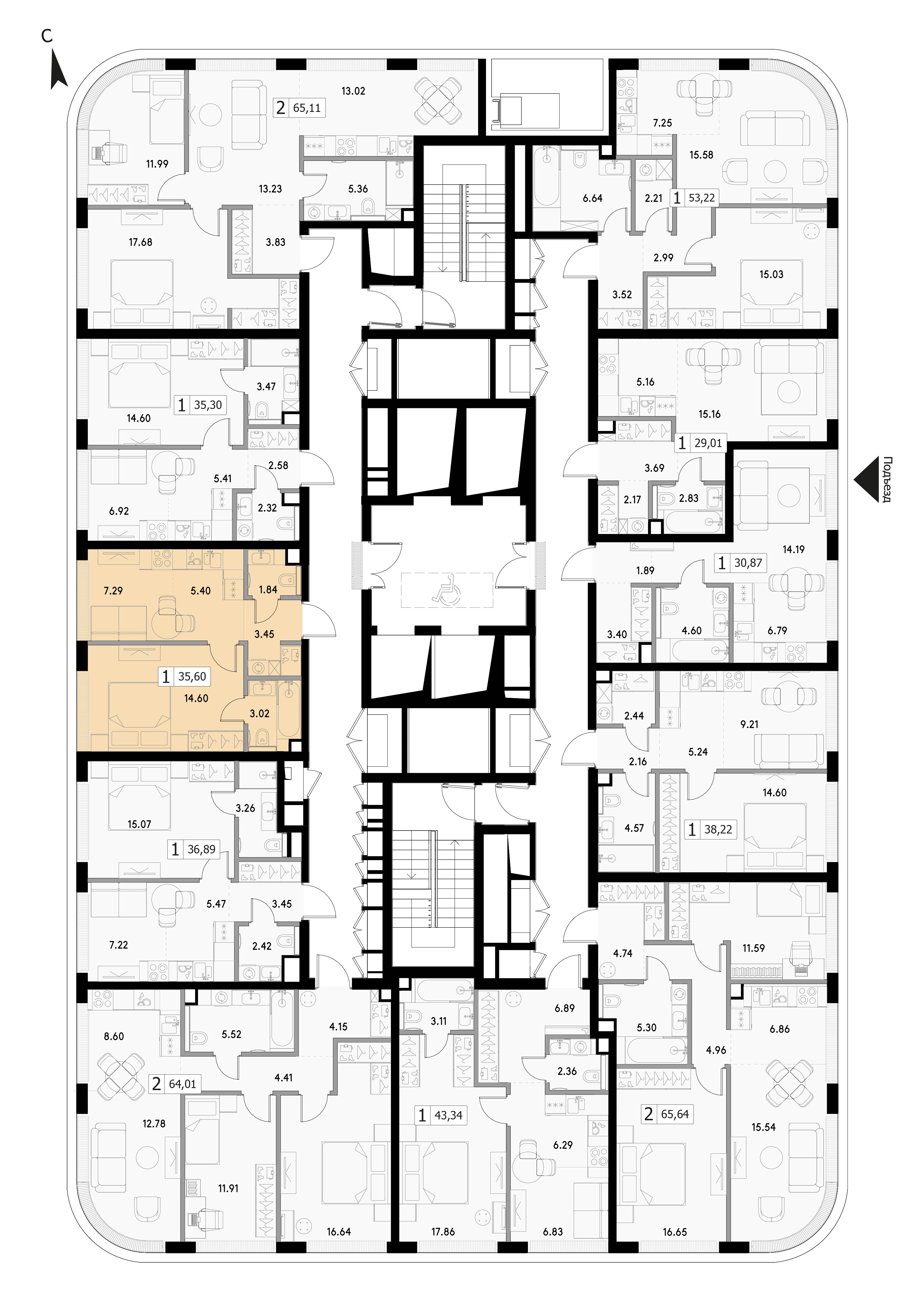 Однокомнатная квартира 35.6 м², 9 этаж, Жилой комплекс «VEER» (Веер)