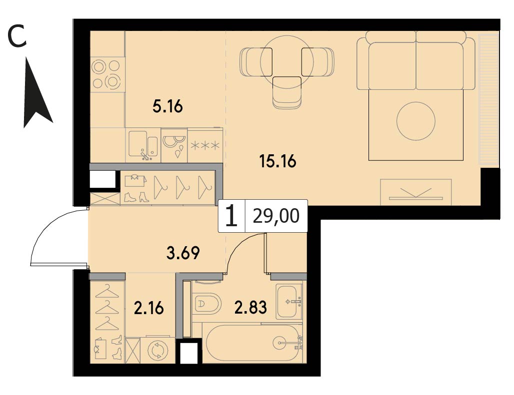 Однокомнатная квартира 30.64 м², 15 этаж, Жилой комплекс «VEER» (Веер)