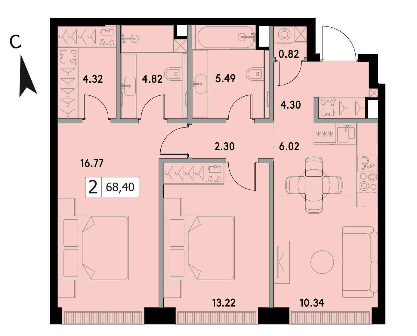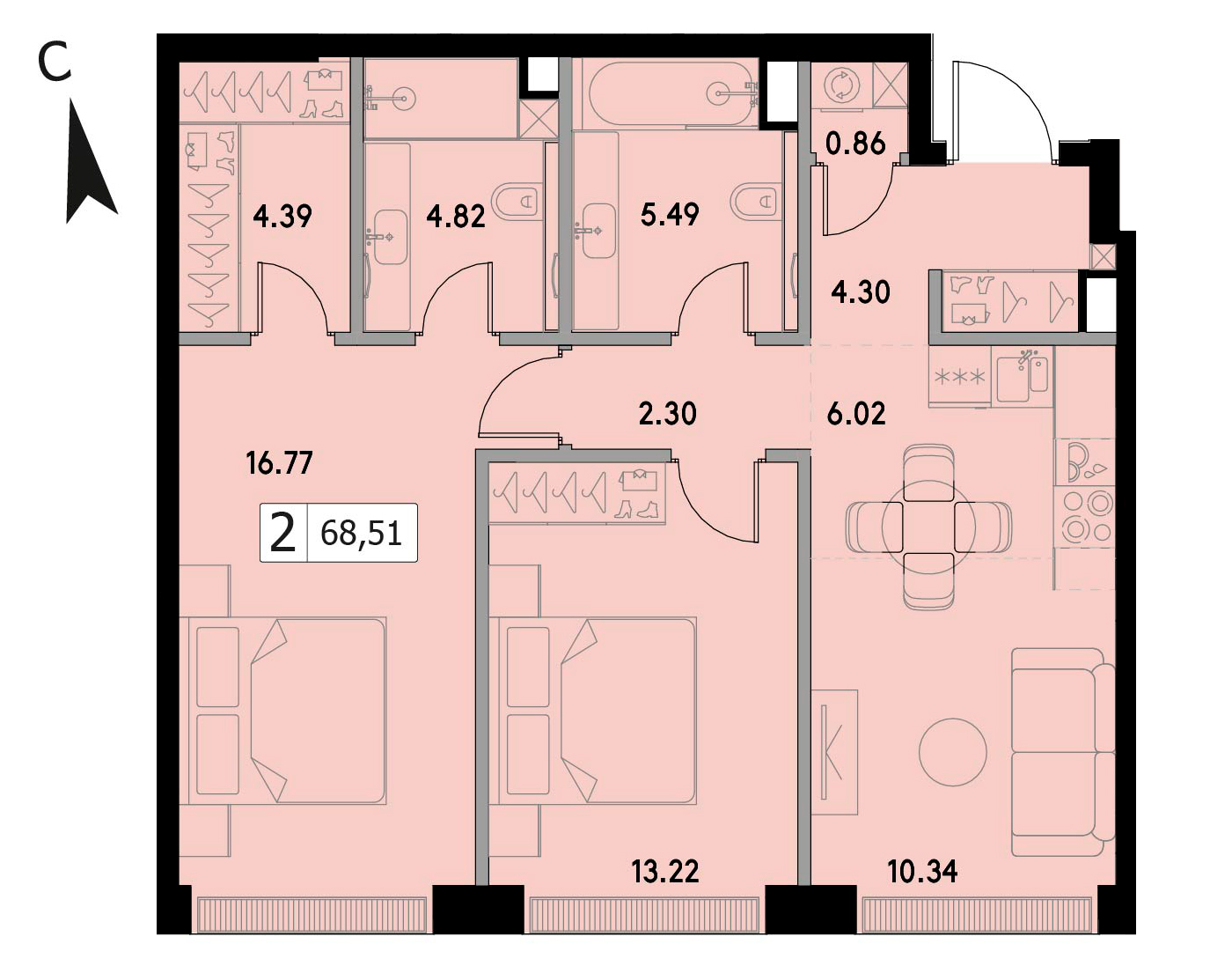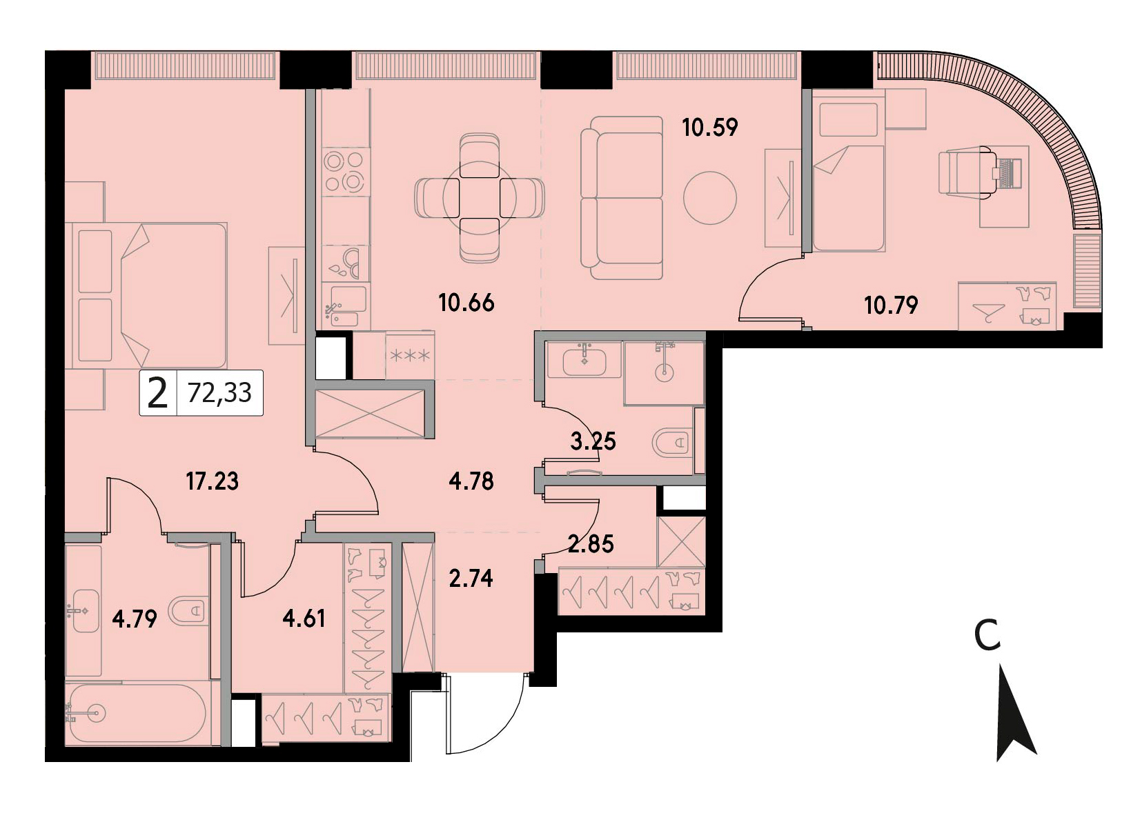 Двухкомнатная квартира 72.19 м², 46 этаж, ЖК «ВЕЕР» (VEER)
