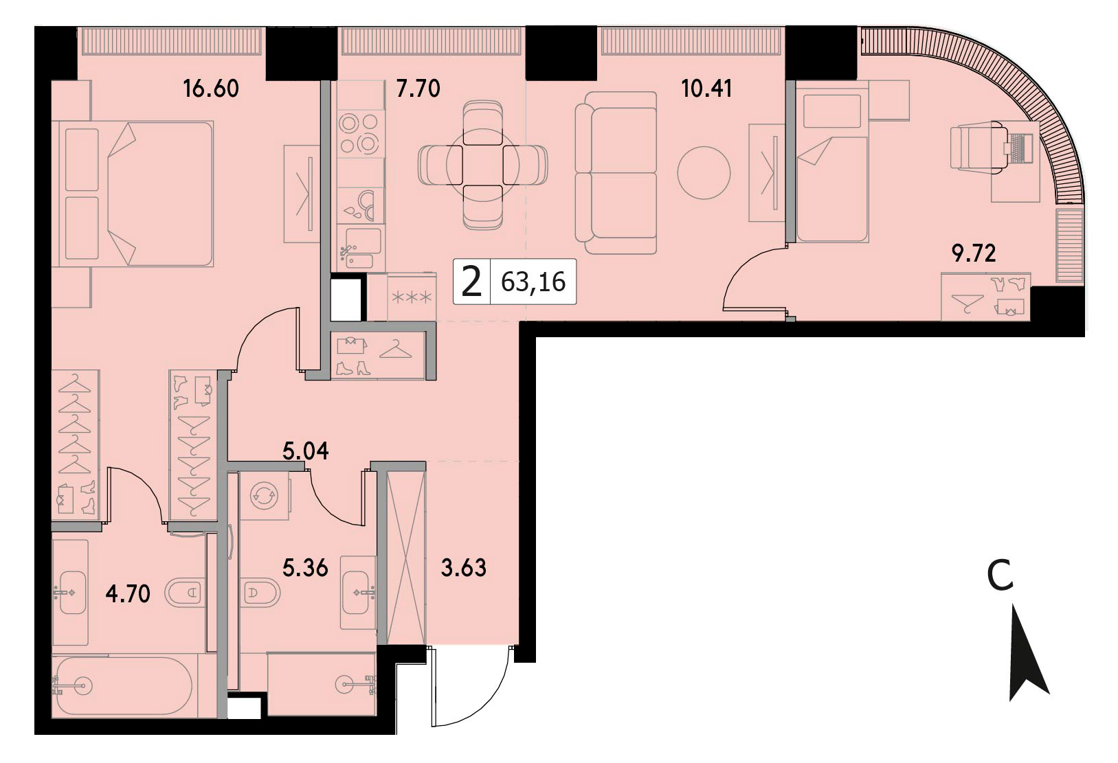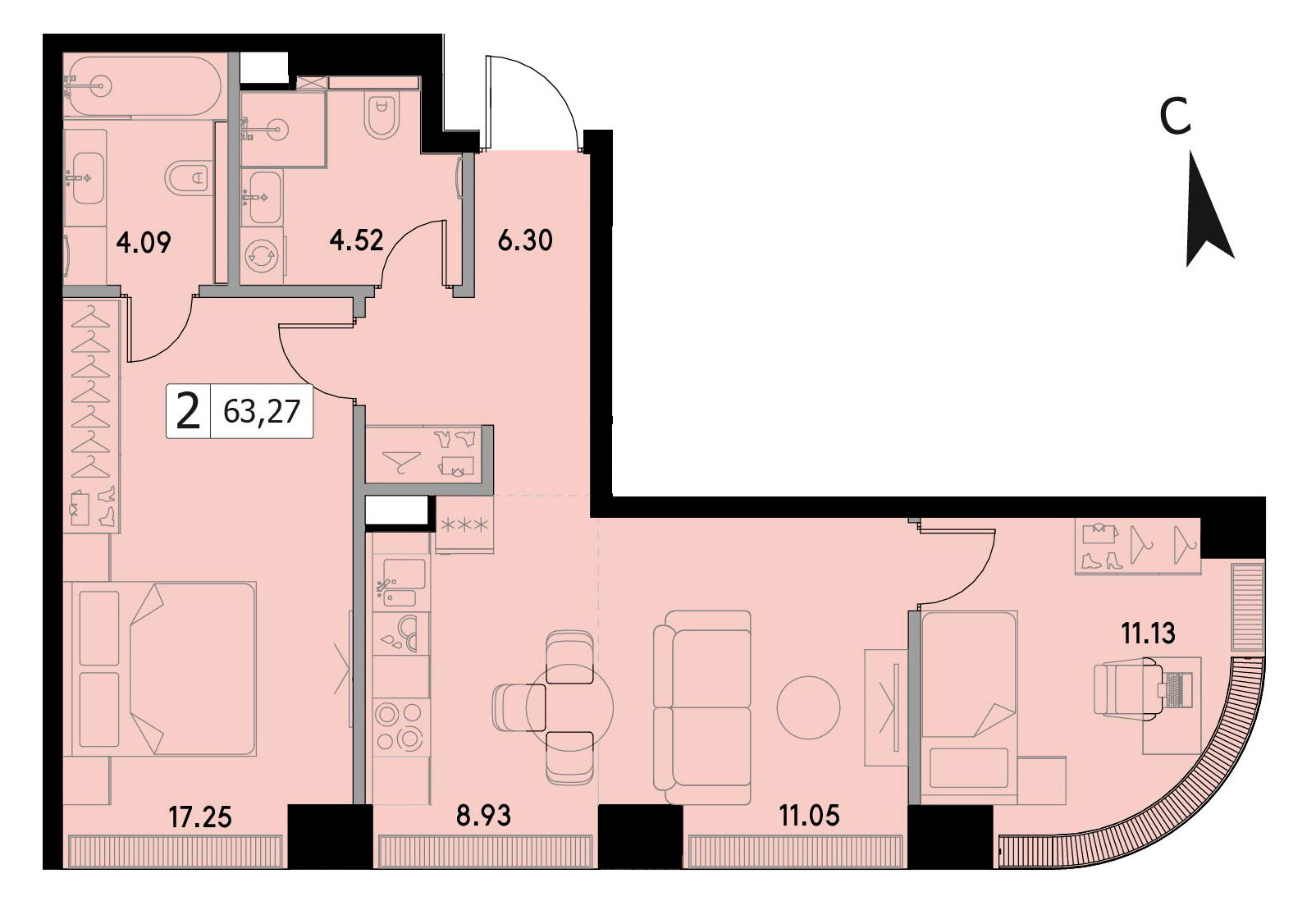 Двухкомнатная квартира 60.15 м², 6 этаж, Жилой комплекс «VEER» (Веер)