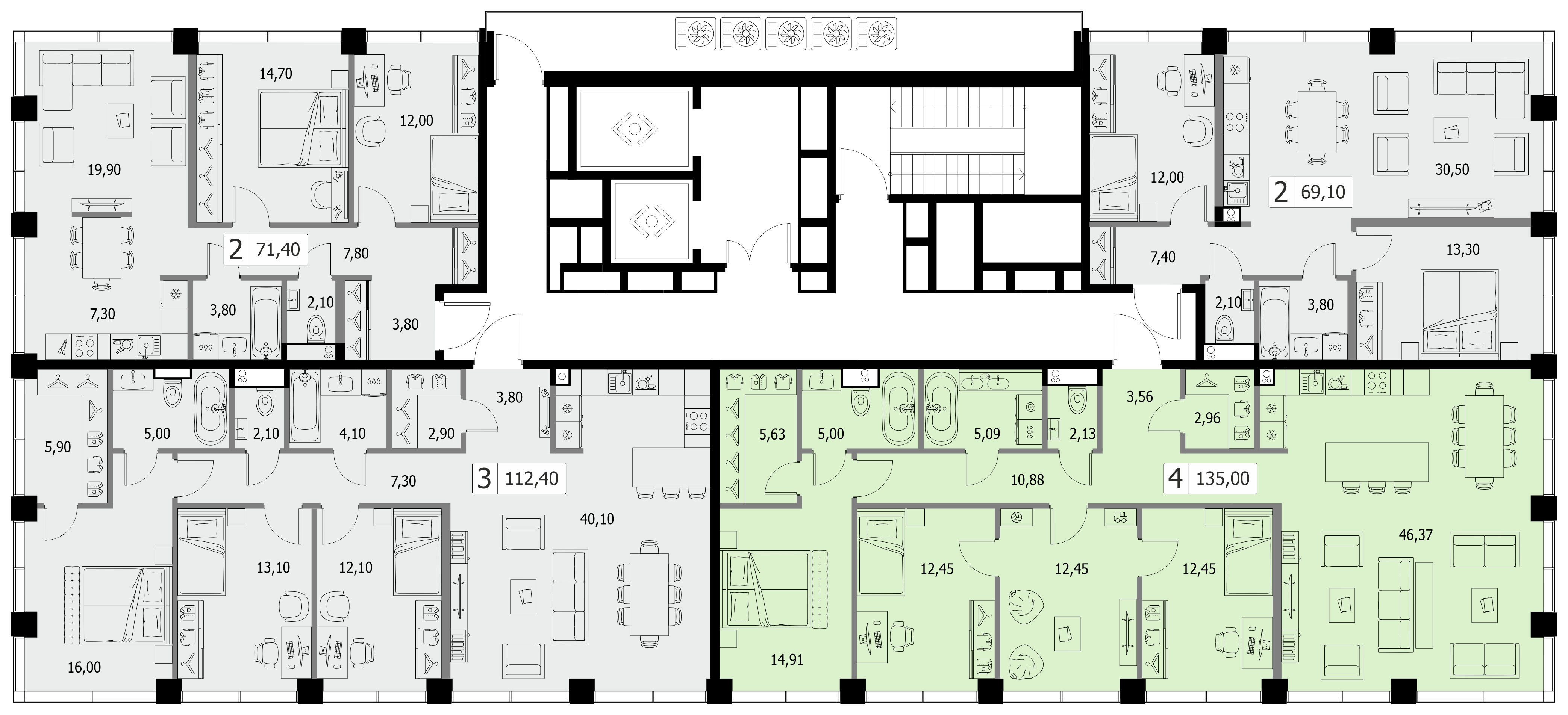 Комфортная двухкомнатная квартира квартира площадью 71.4 м² без отделки. Лот расположен на 15 этаже, корпуса 7.2 жилого комплекса «Северный порт».Комплекс находится по адресу: г. Москва, Ленинградское шоссе, срок сдачи 2028г.. Это соединение удобной инфраструктуры городской застройки и зеленых зон отдыха.