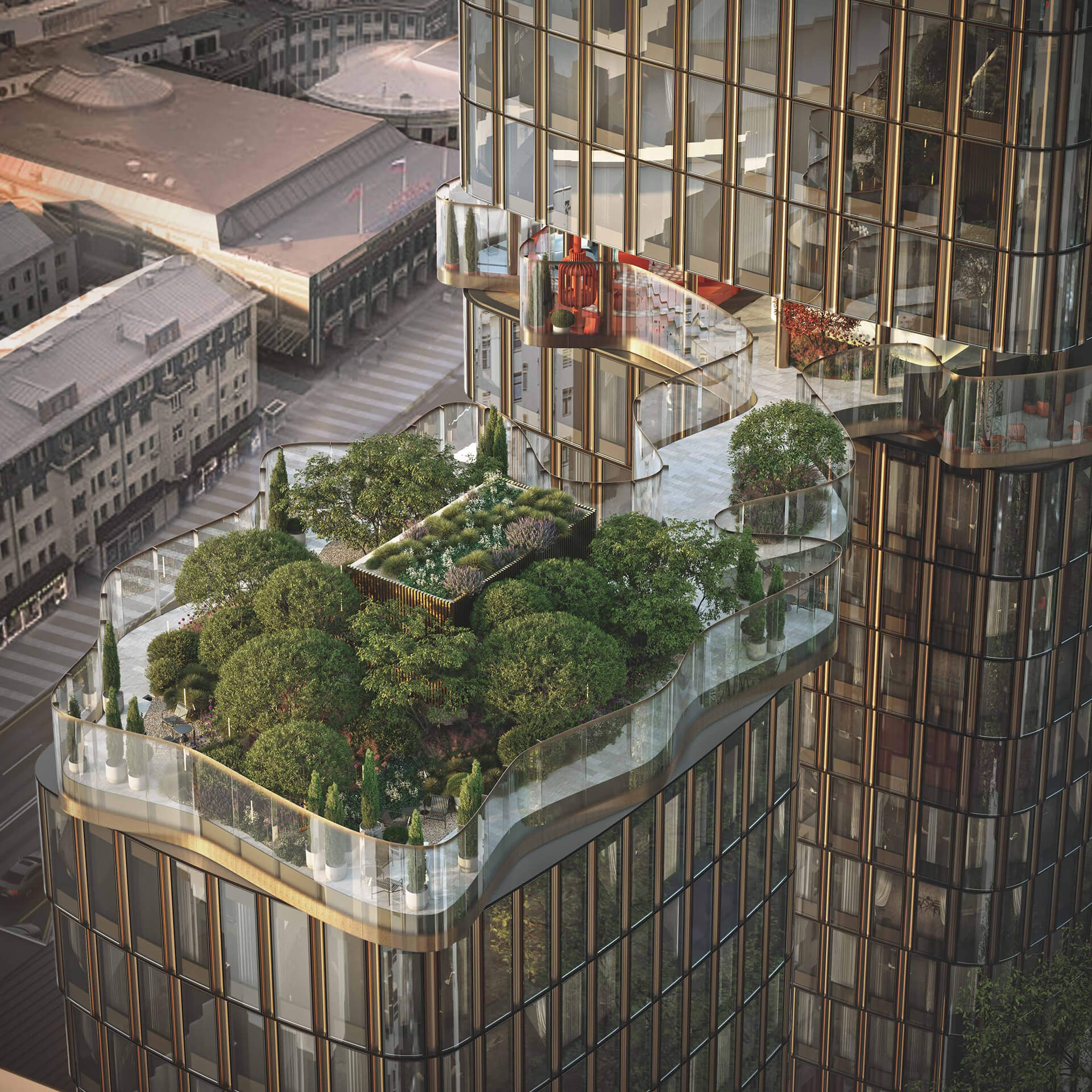 Комплекс находится по адресу: г. Москва, Новослободская, срок сдачи 2028г.. Это соединение удобной инфраструктуры городской застройки и зеленых зон отдыха.