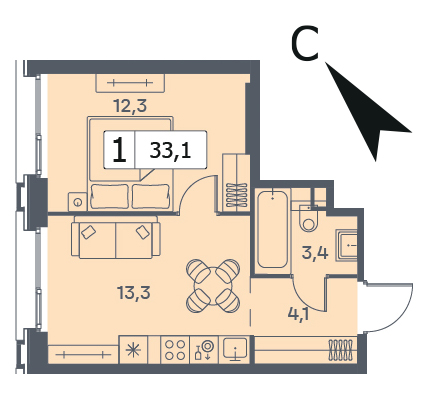 33.1 м²