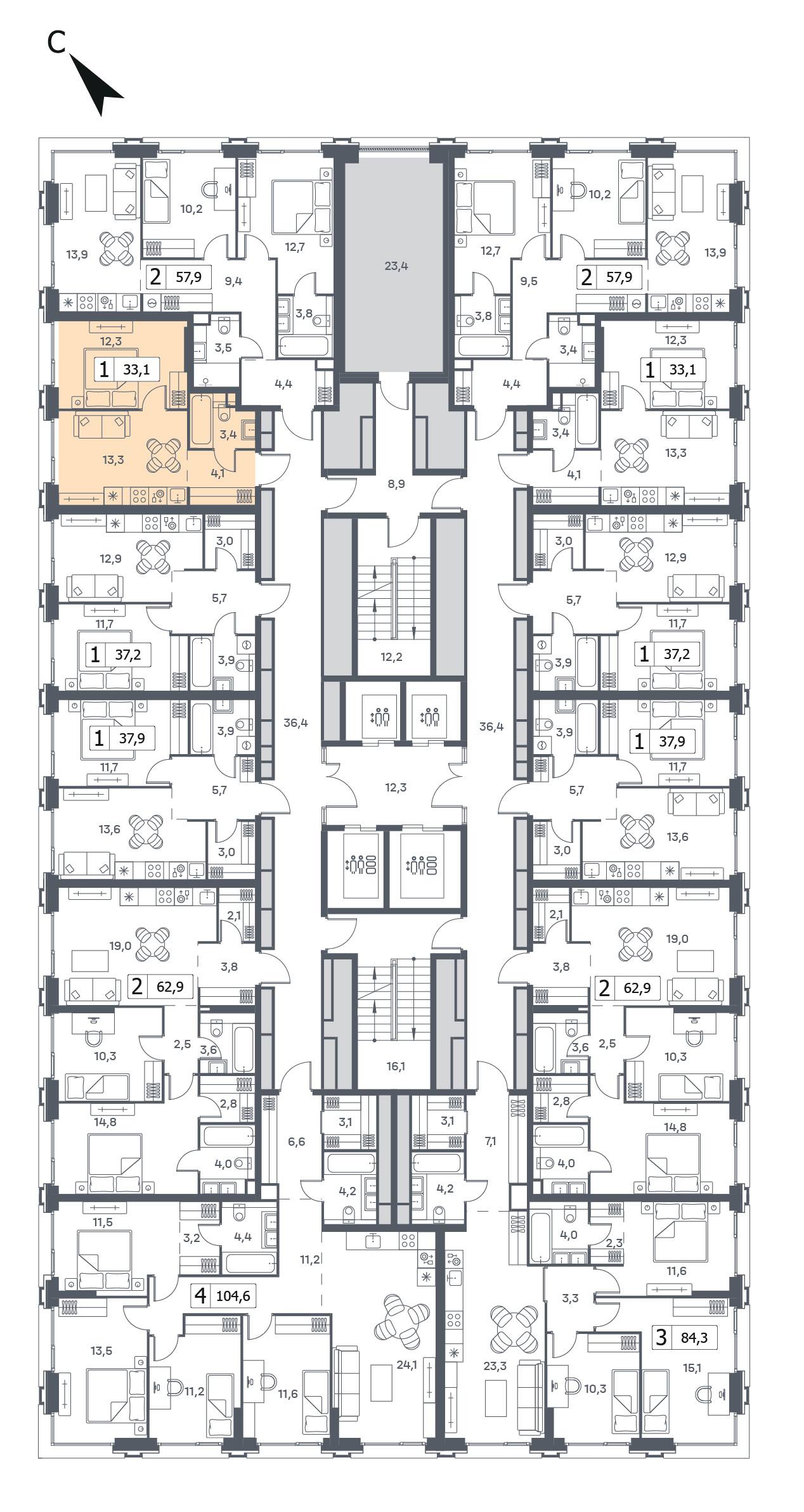 33.1 м²